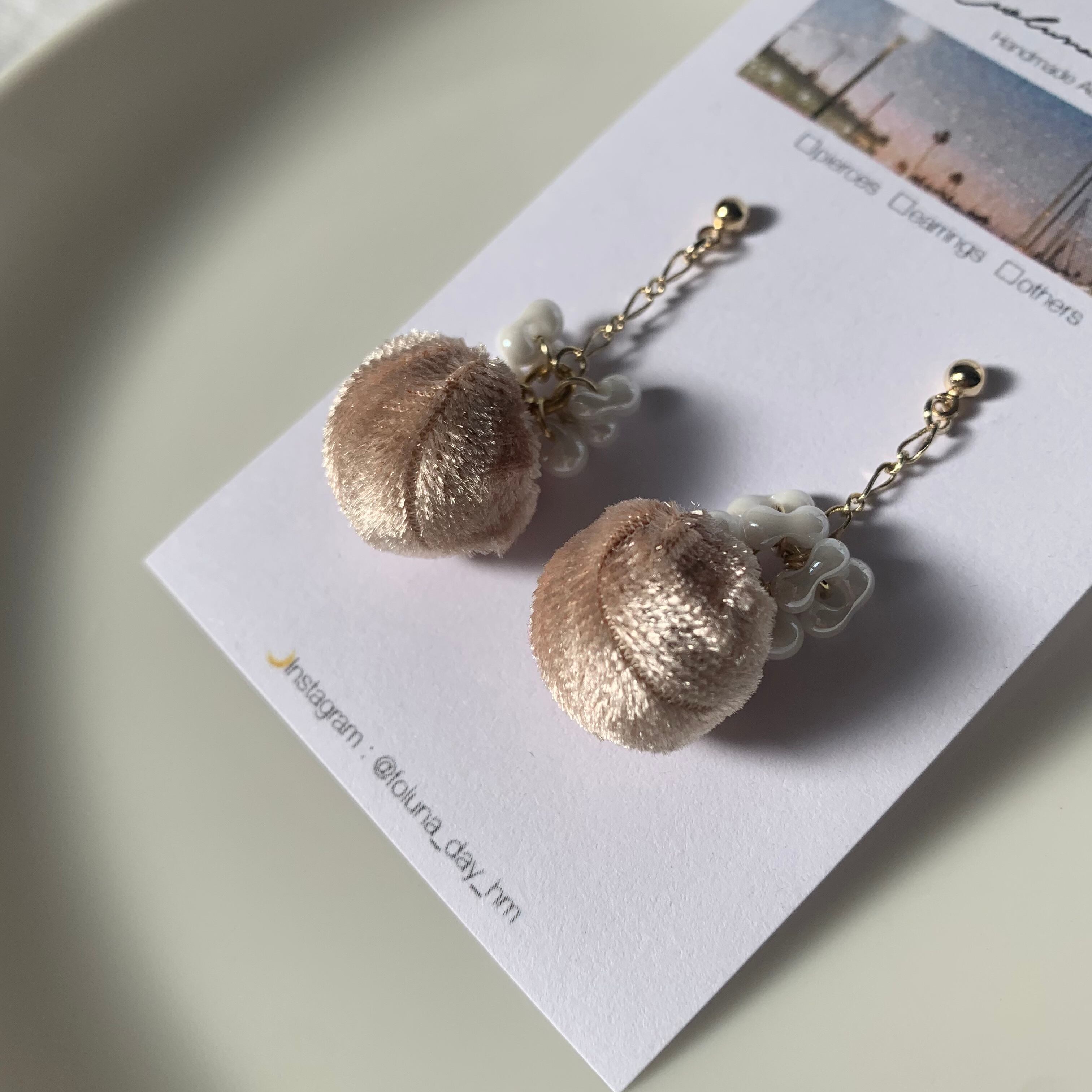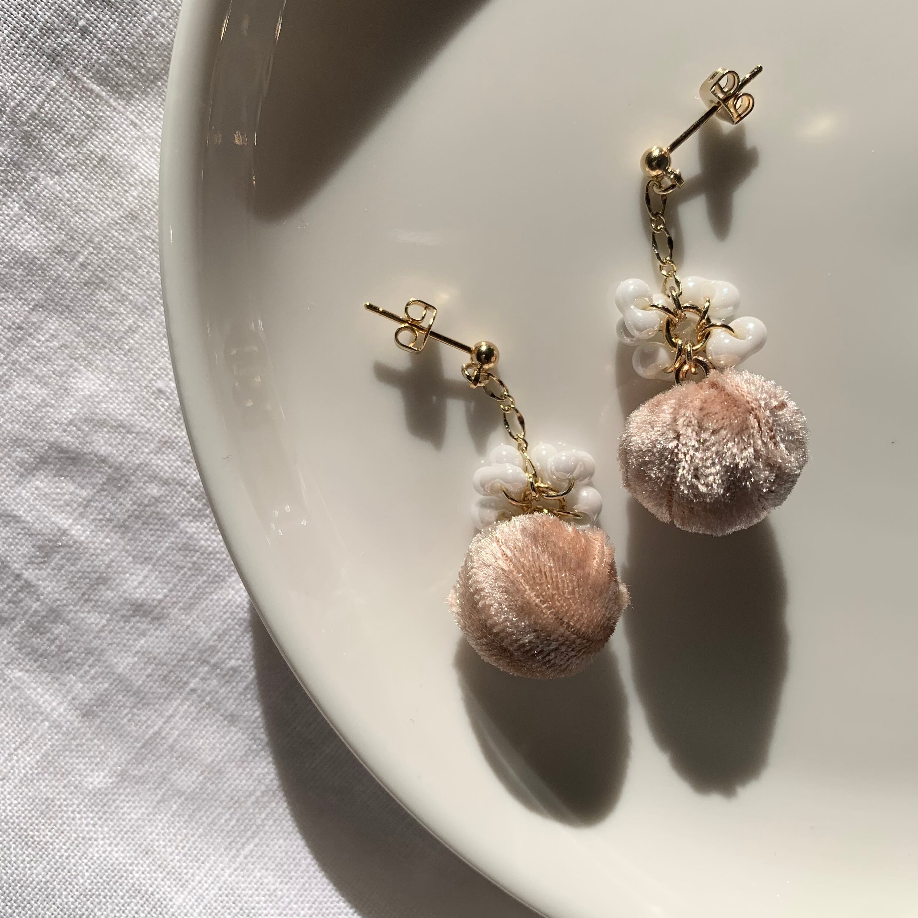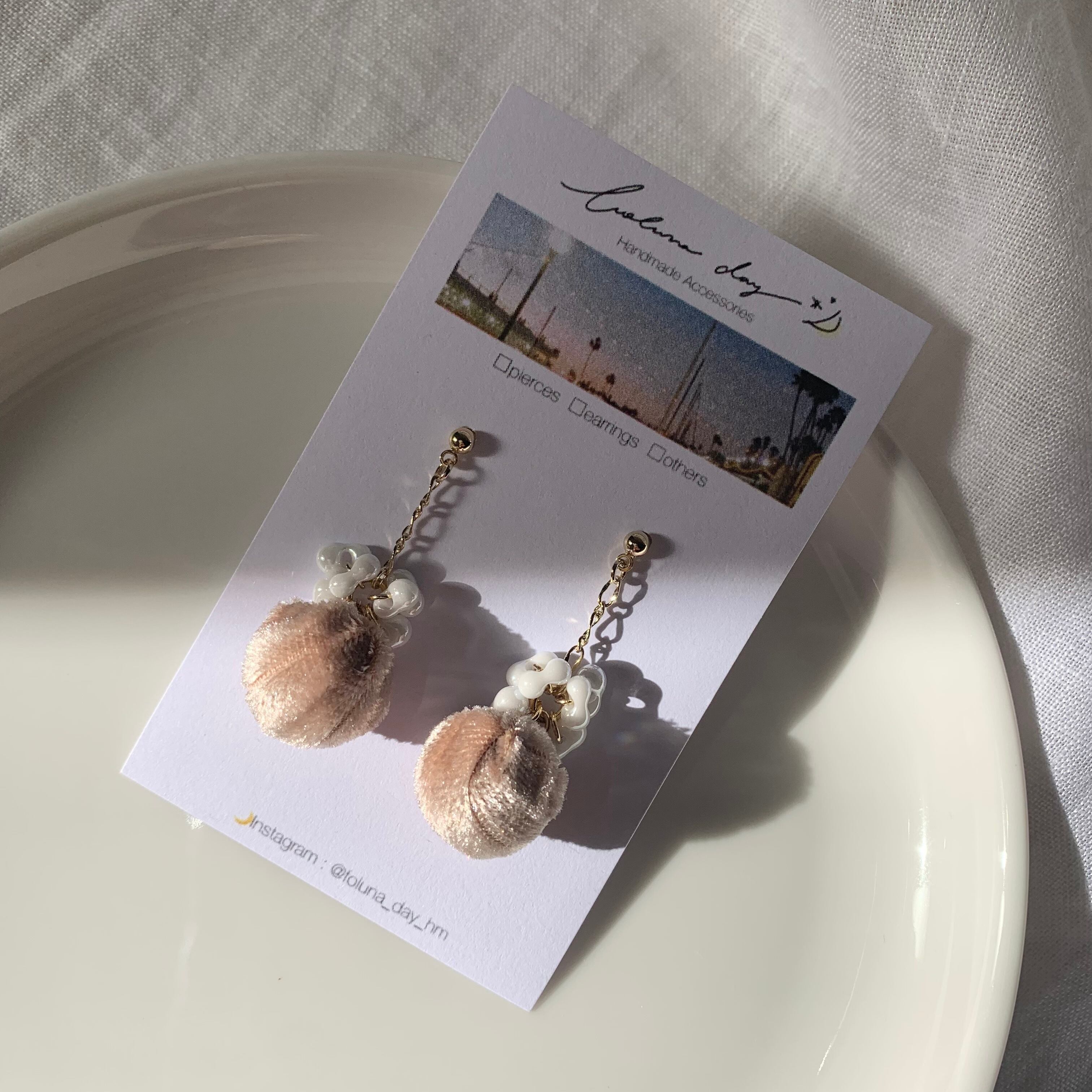 ピアス イヤリング 大ぶり 大きめ 丸 韓国 冬 布 ニット ベージュ ビーズ 上品 繊細 大人可愛い ワンポイント ロング 揺れる