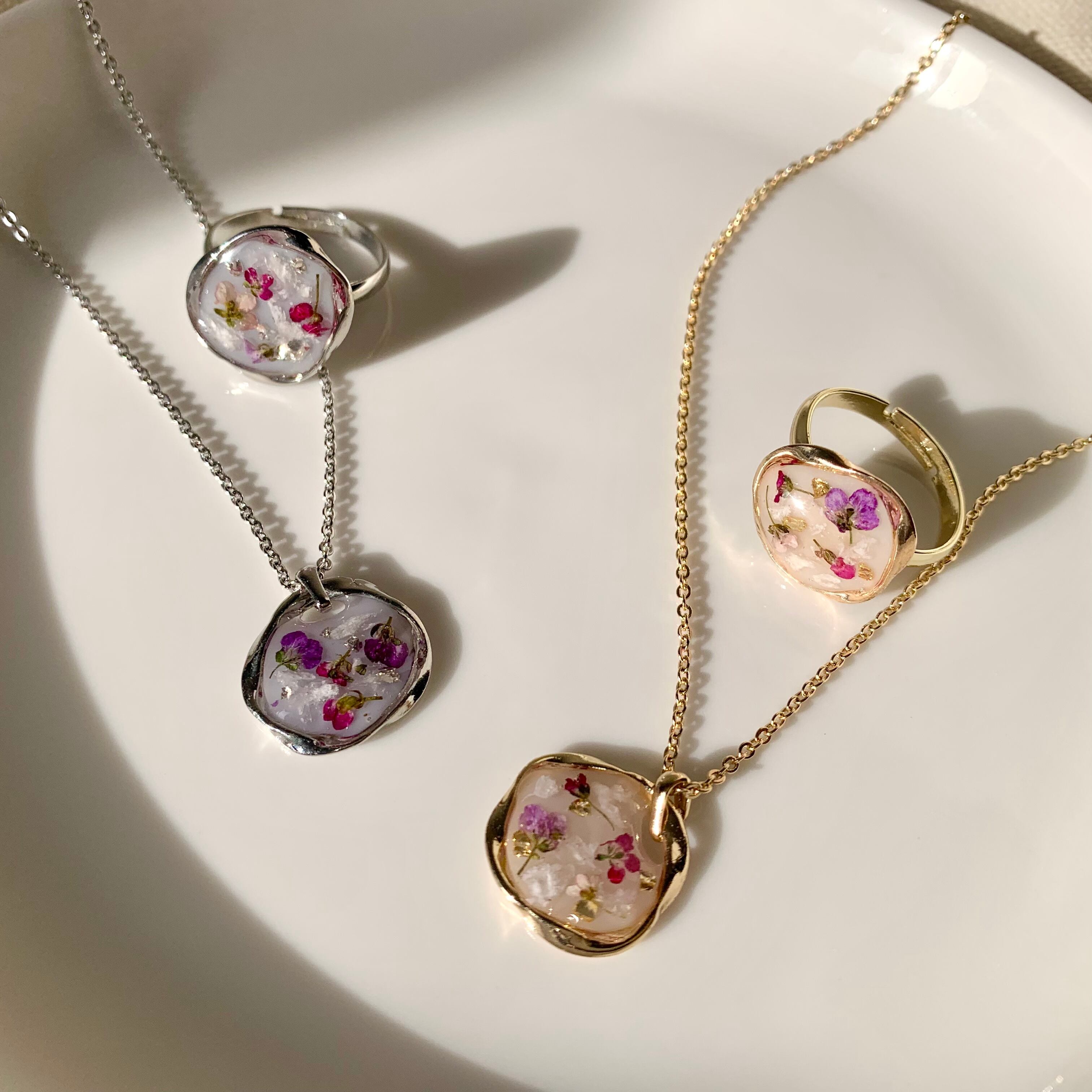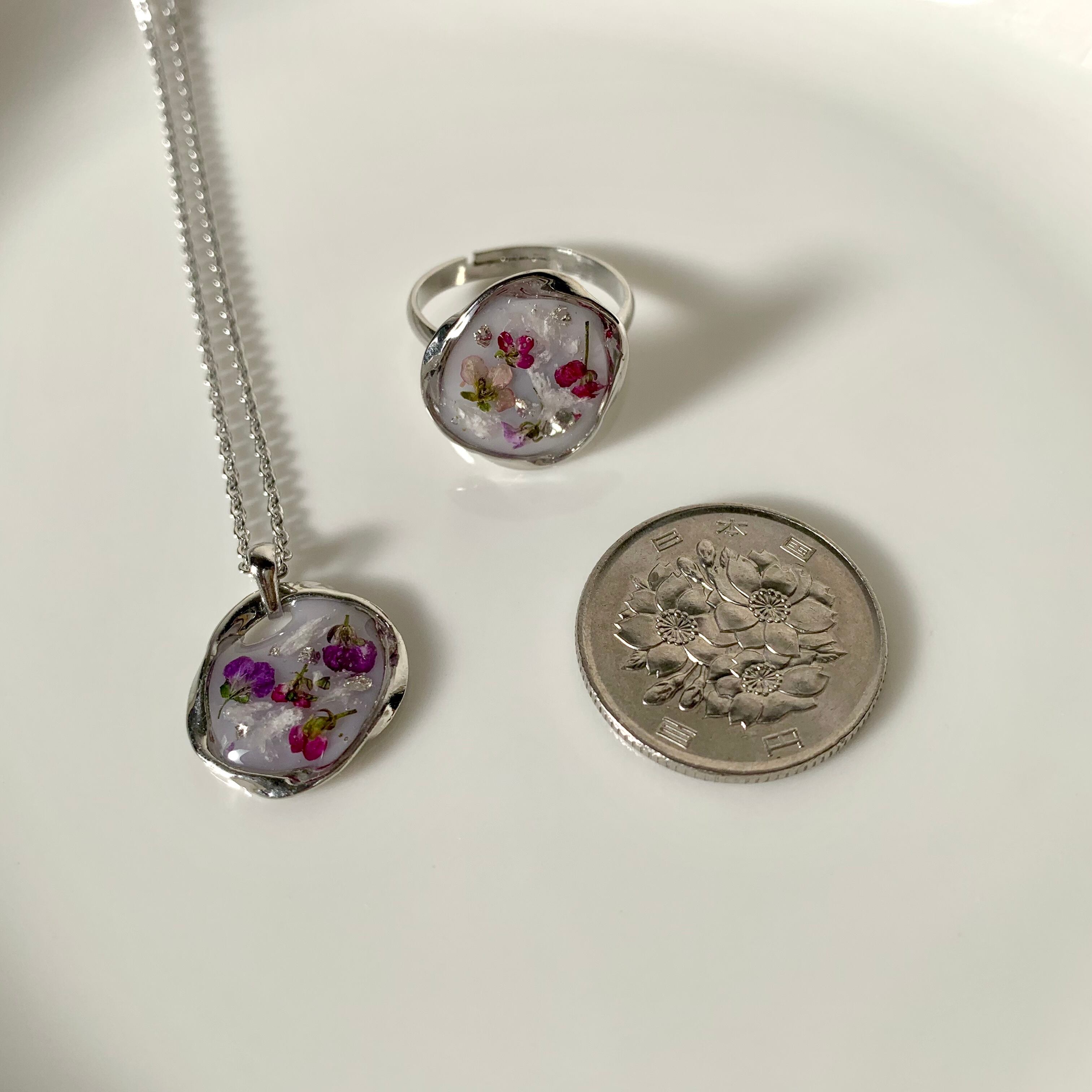 ネックレス フラワー 花 おしゃれ 淡色 クリーム アイスグレー ゴールド シルバー 大ぶり 上品 繊細