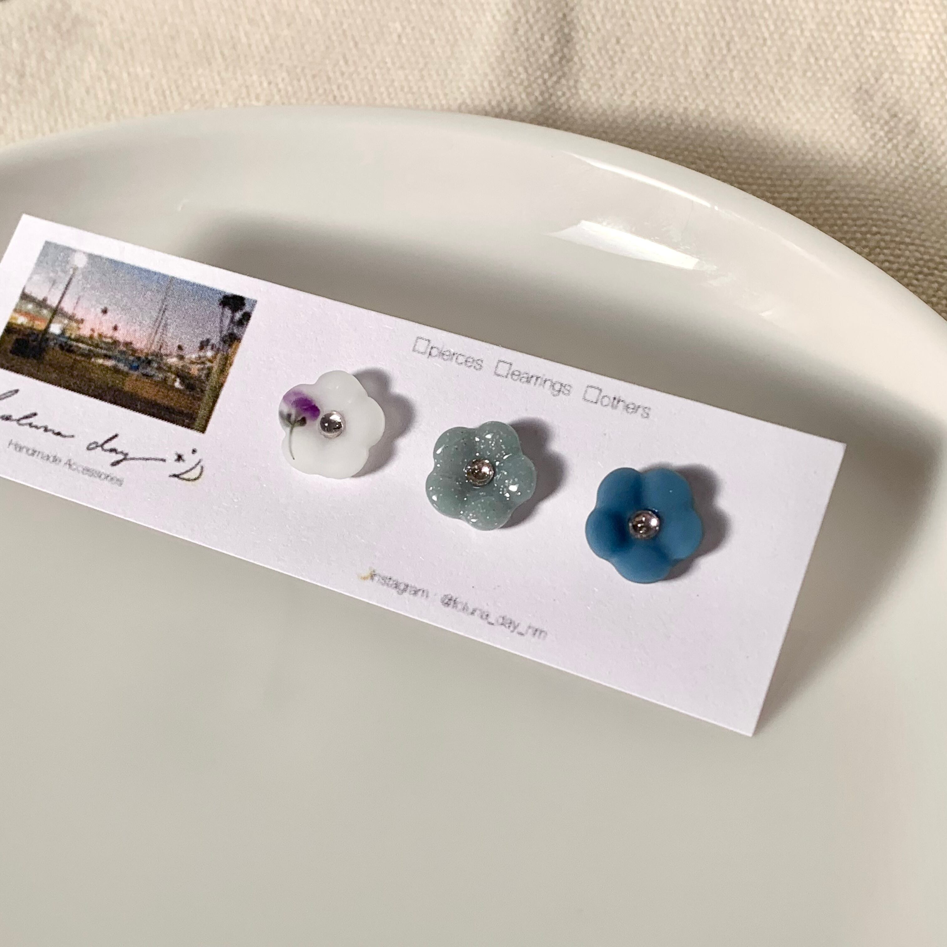 ピアス イヤリング 小ぶり 小さめ ミニピアス 淡色 韓国 韓国風 くすみ ブルー 青 淡色 フラワー 花 小花 上品 繊細 大人可愛い