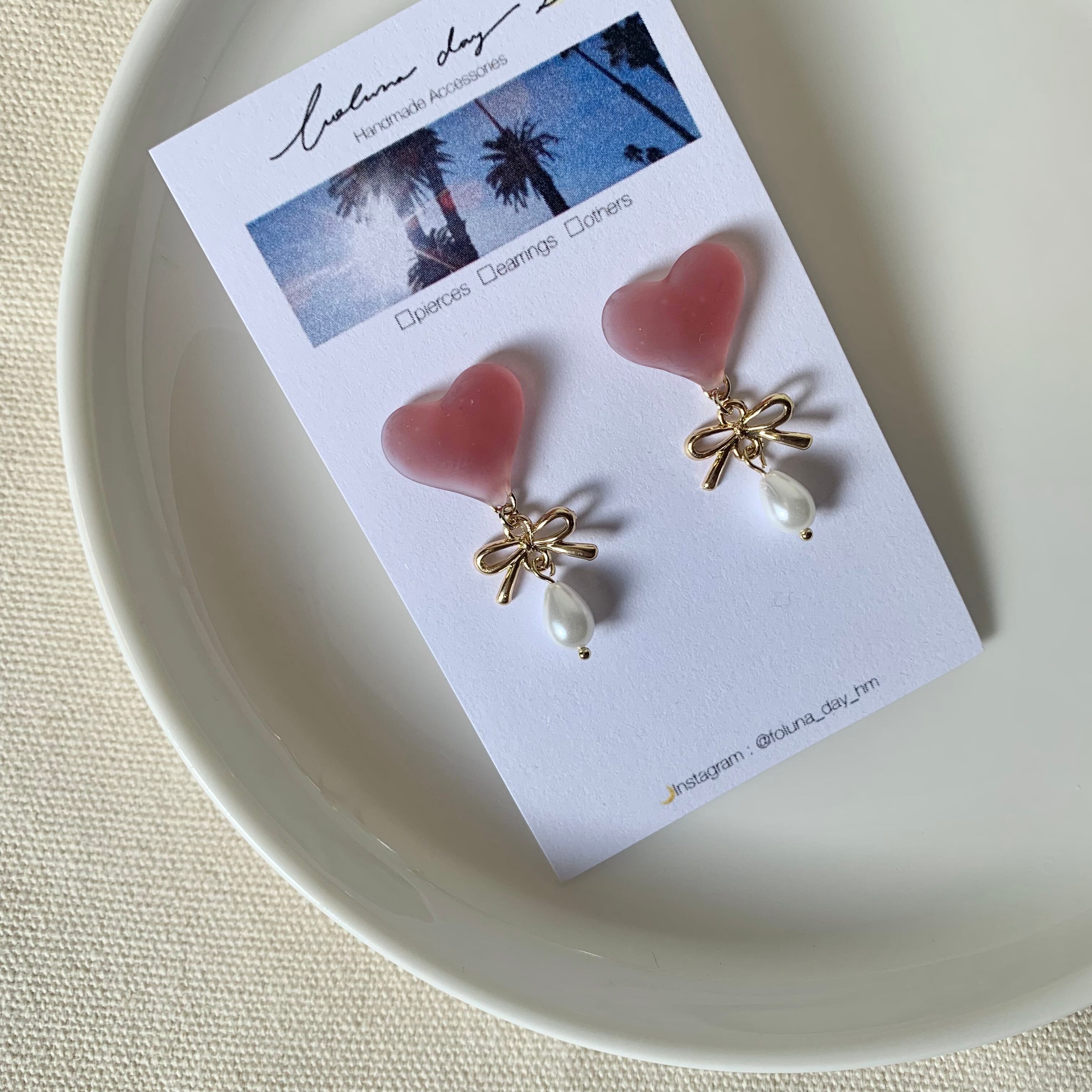 可愛らしいパーツを合わせたので、ハートはマット仕上がりにしてバランスをとってみました!赤色とリボンで一気にバレンタイン気分になります^^