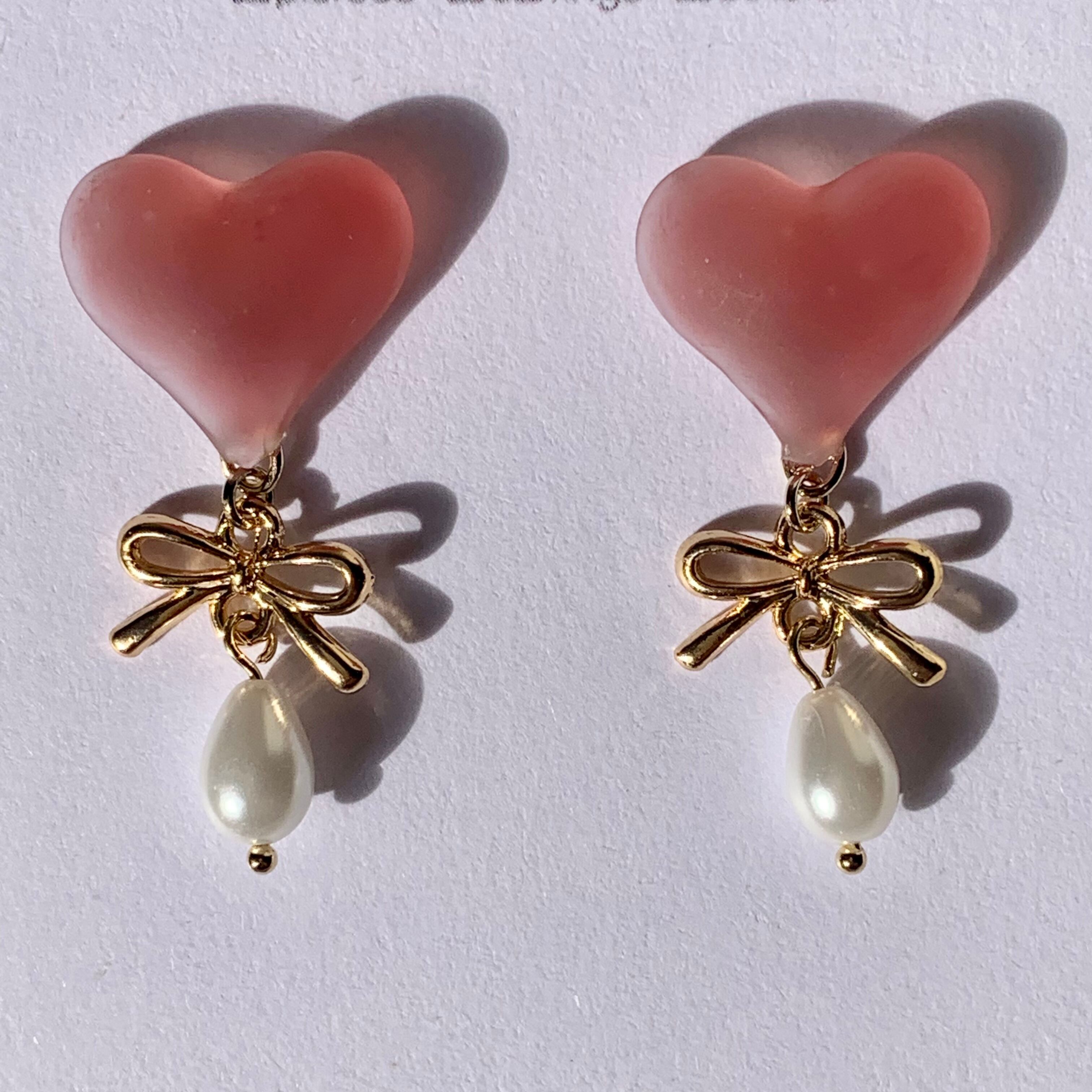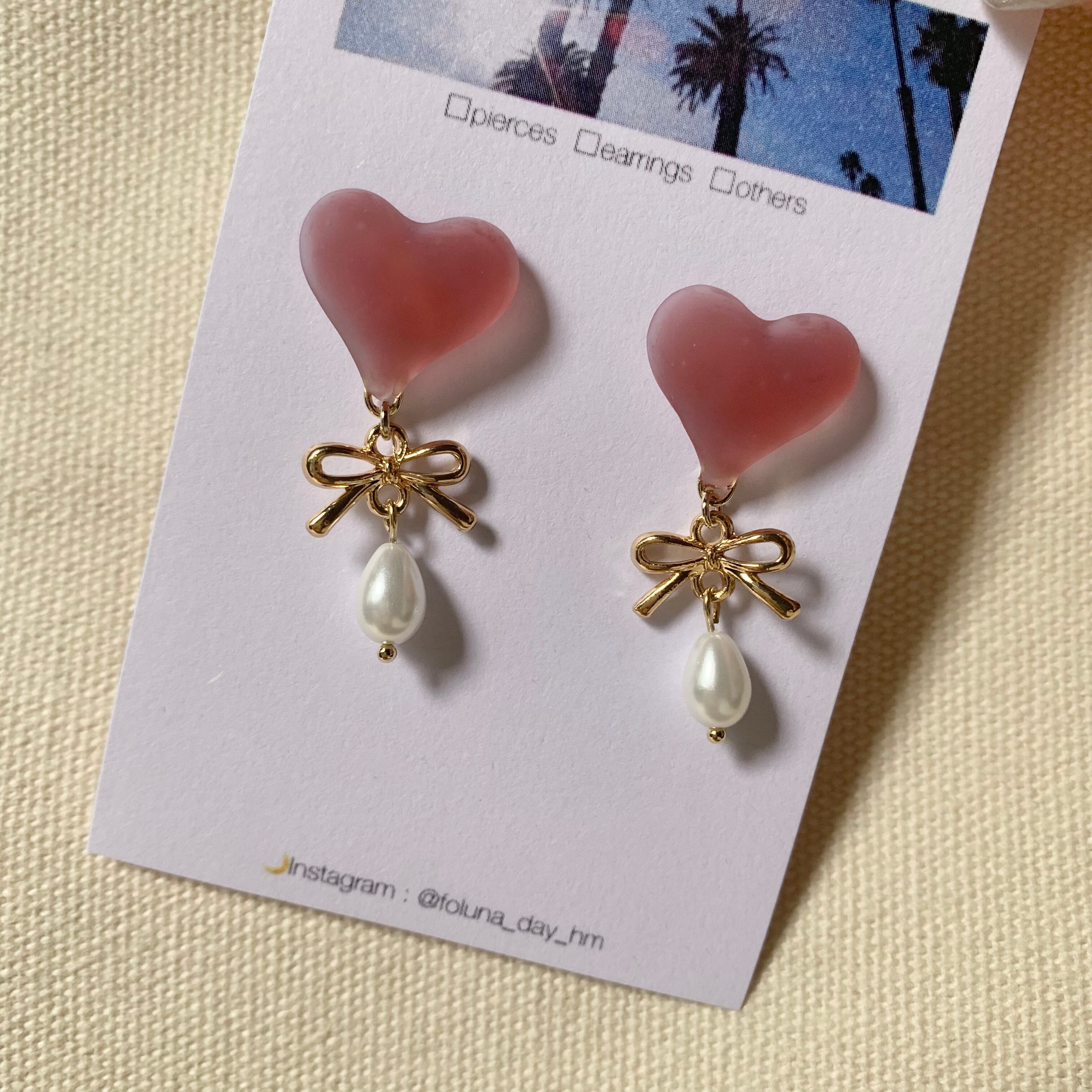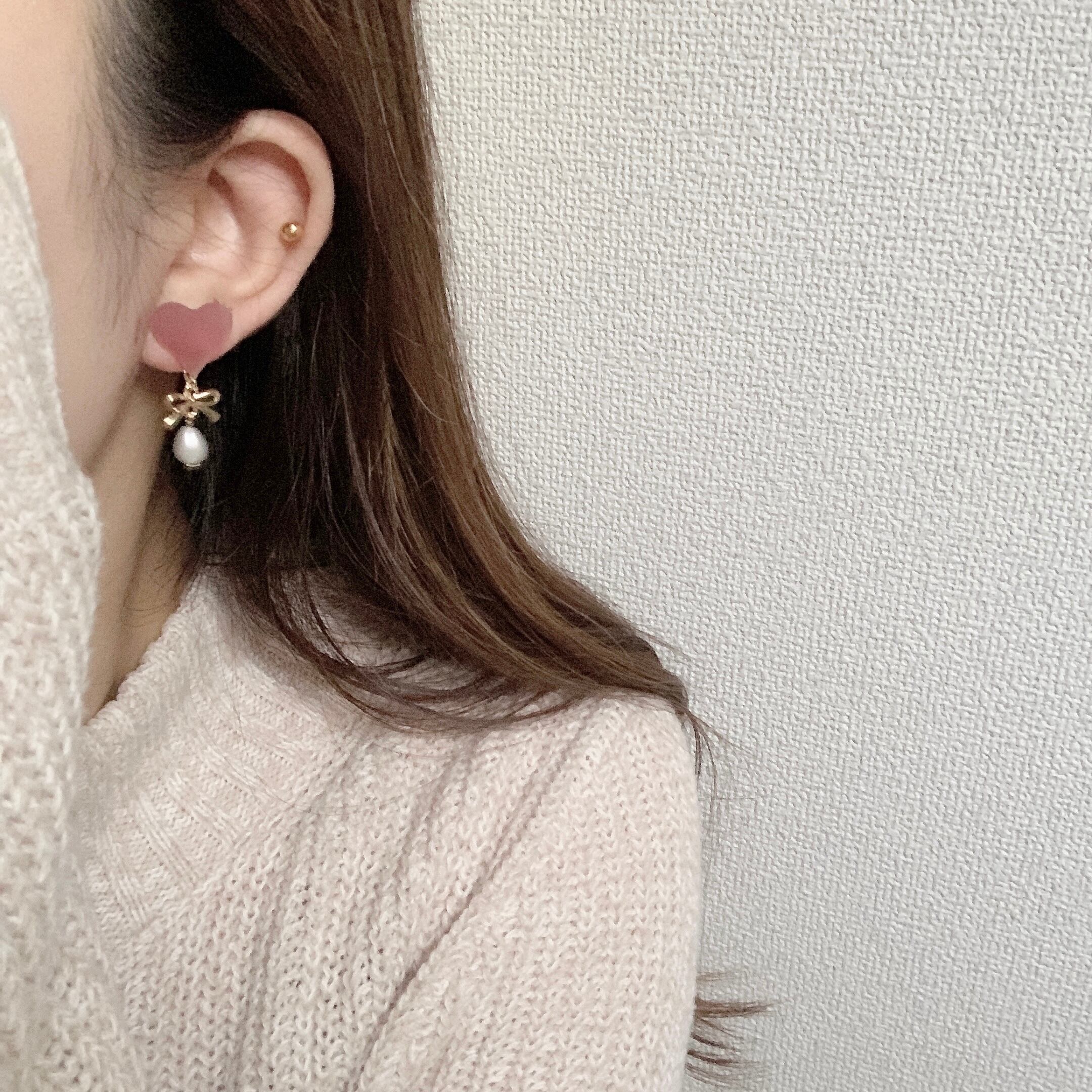 ピアス イヤリング 韓国 韓国風 アクセサリー 大ぶり 大きめ ラブリー 揺れる バレンタイン ハート レッド 赤 パール