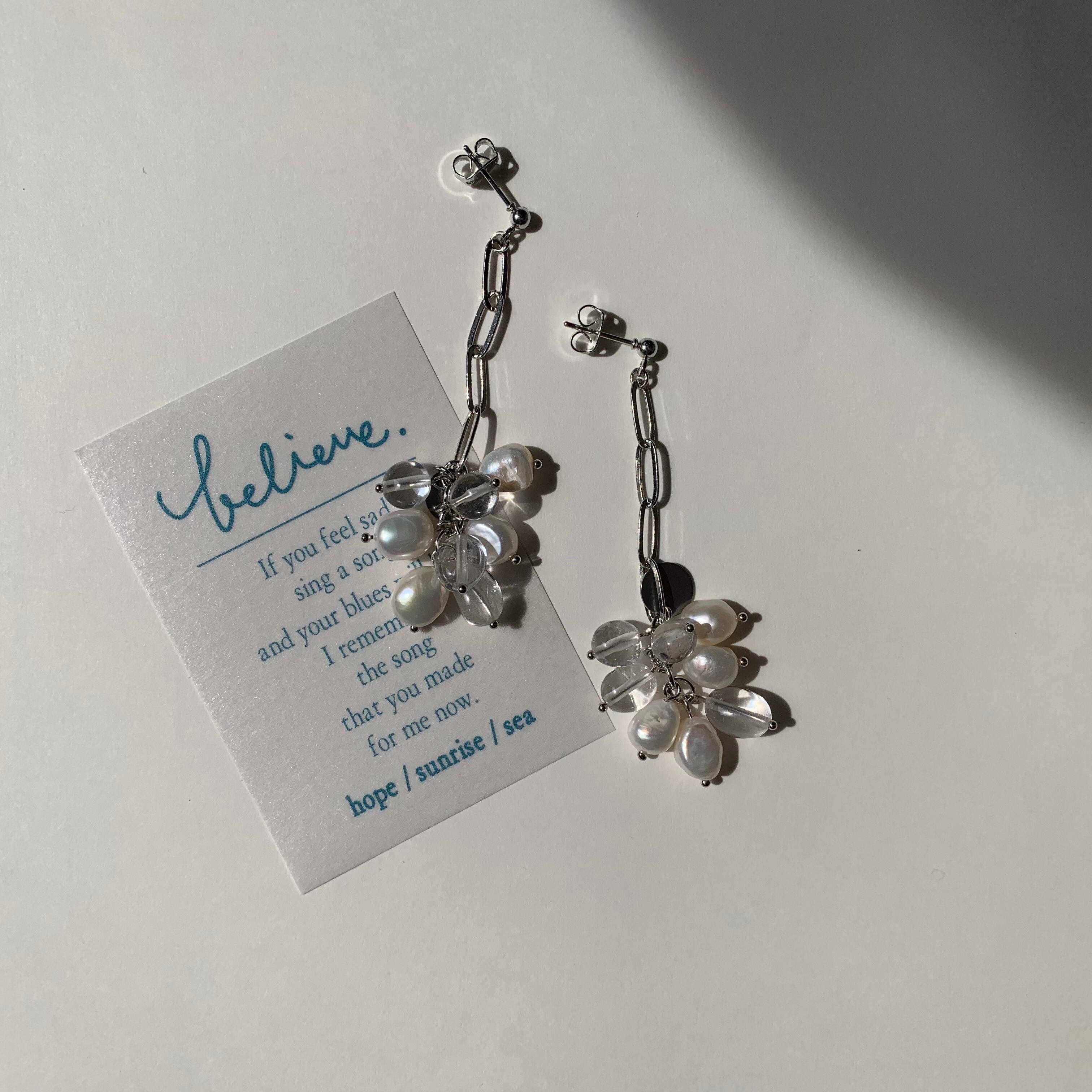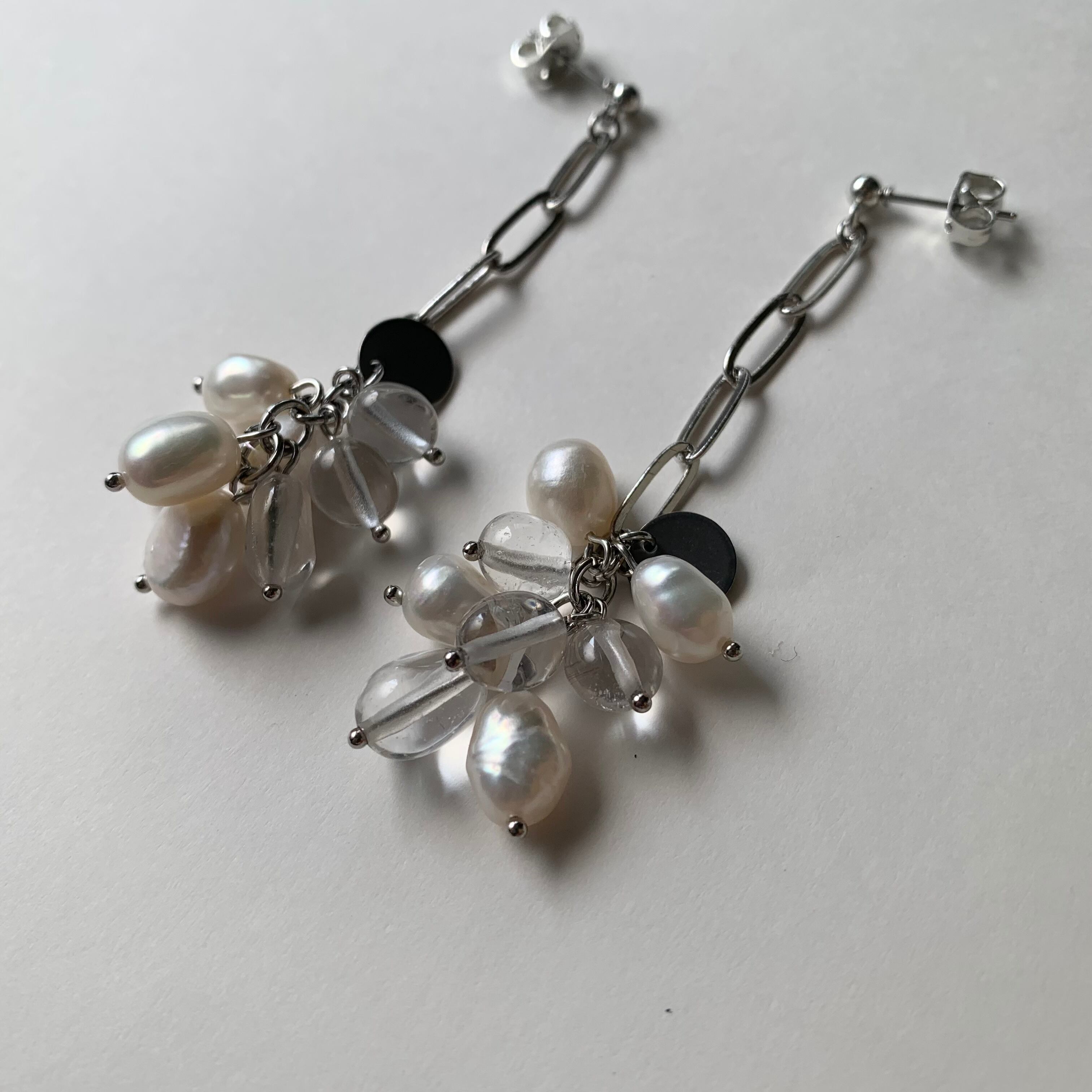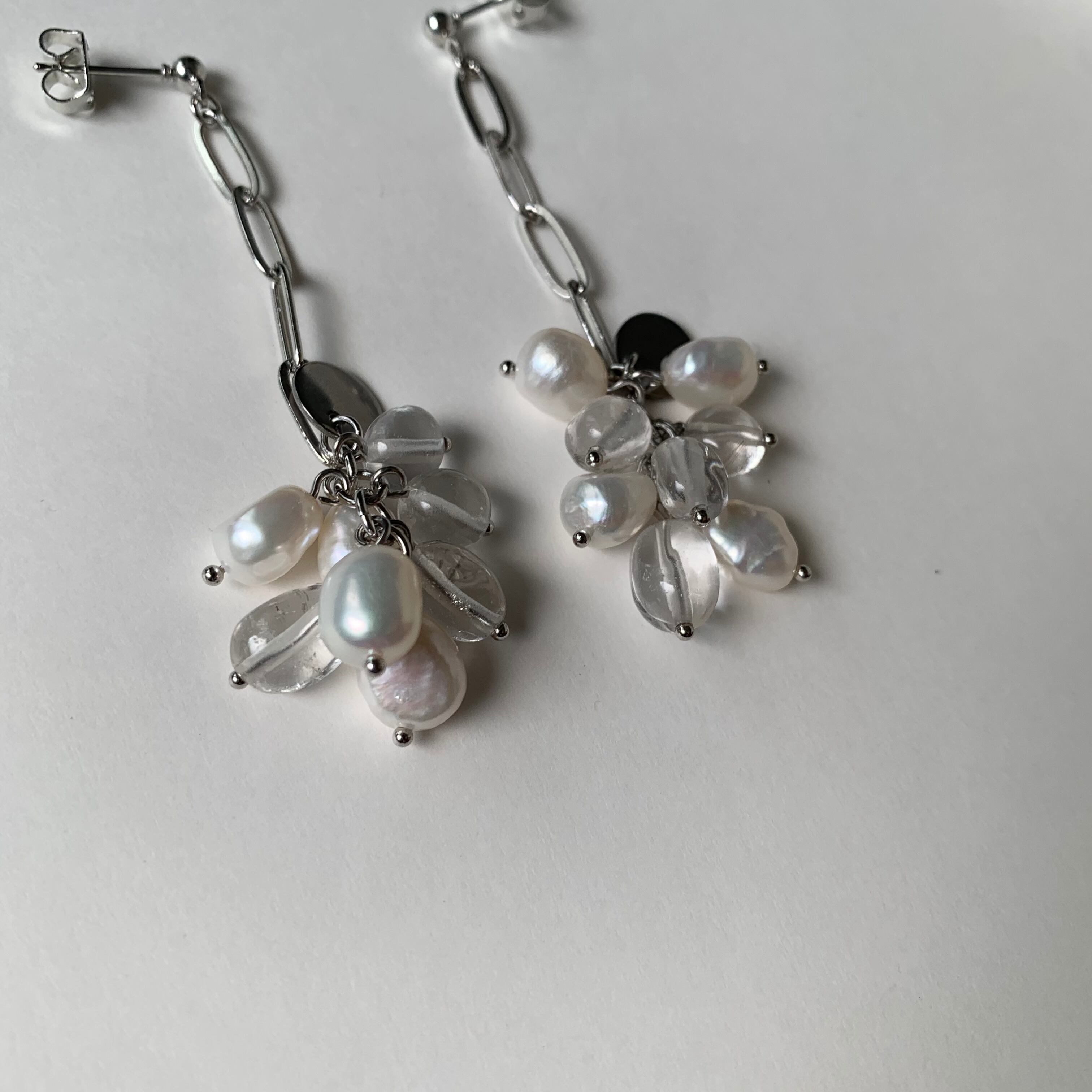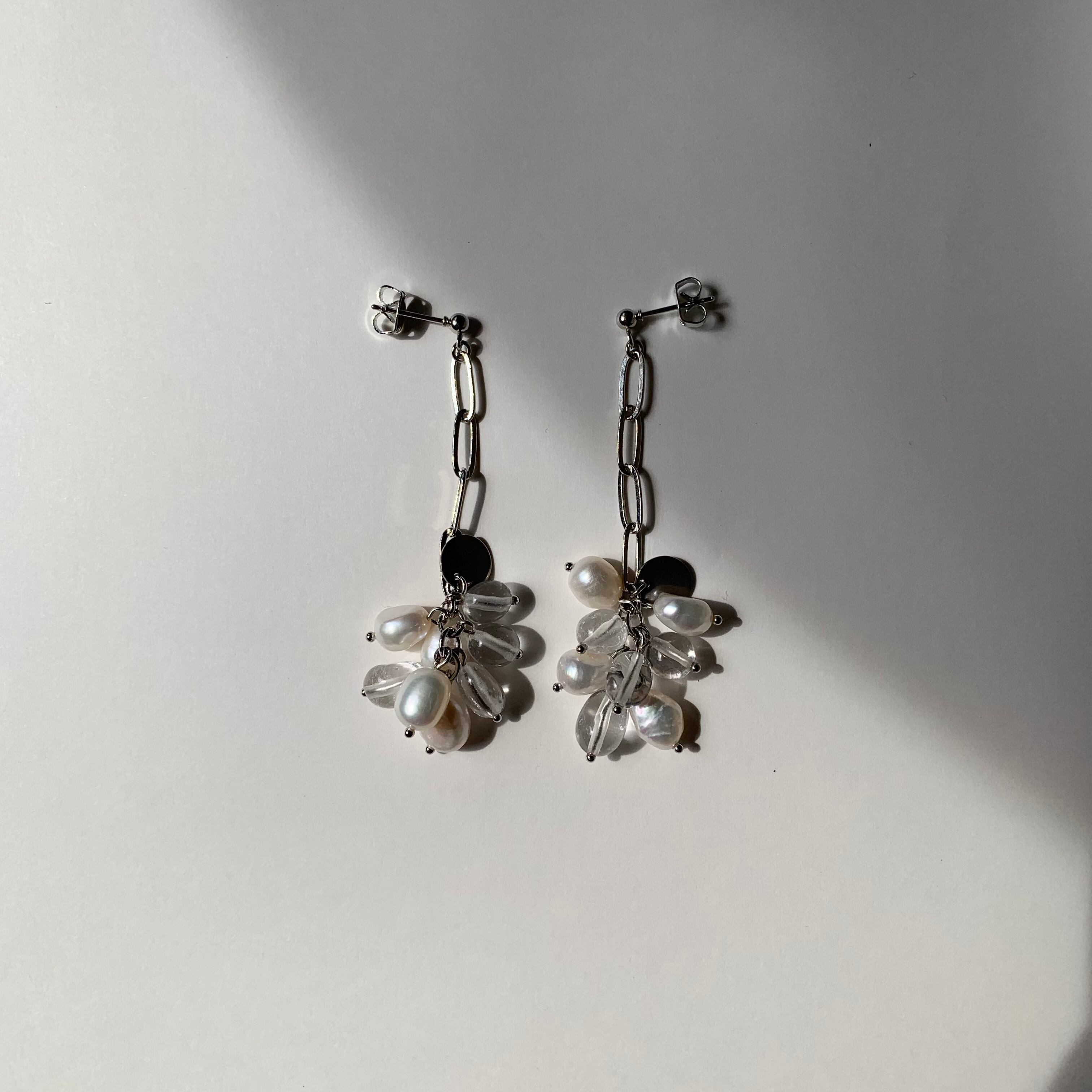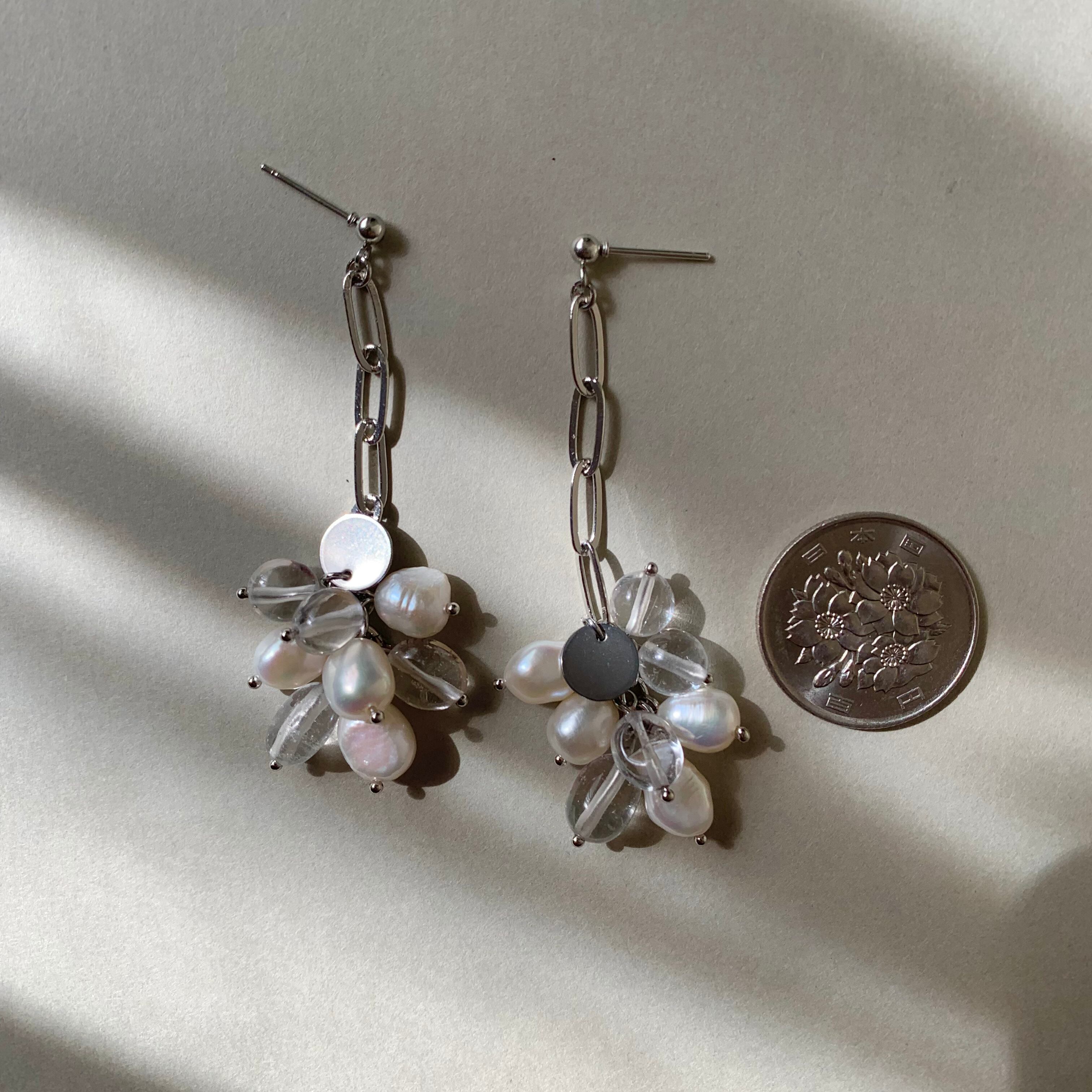 ピアス イヤリング 淡色 淡水パール パール 天然石 ストーン クリア 春夏 ナチュラル 存在感 大ぶり 大きめ ロング 爽やか ホワイト 韓国 韓国風 上品 繊細 おしゃれ 揺れる 可愛い 大人可愛い アクセサリー