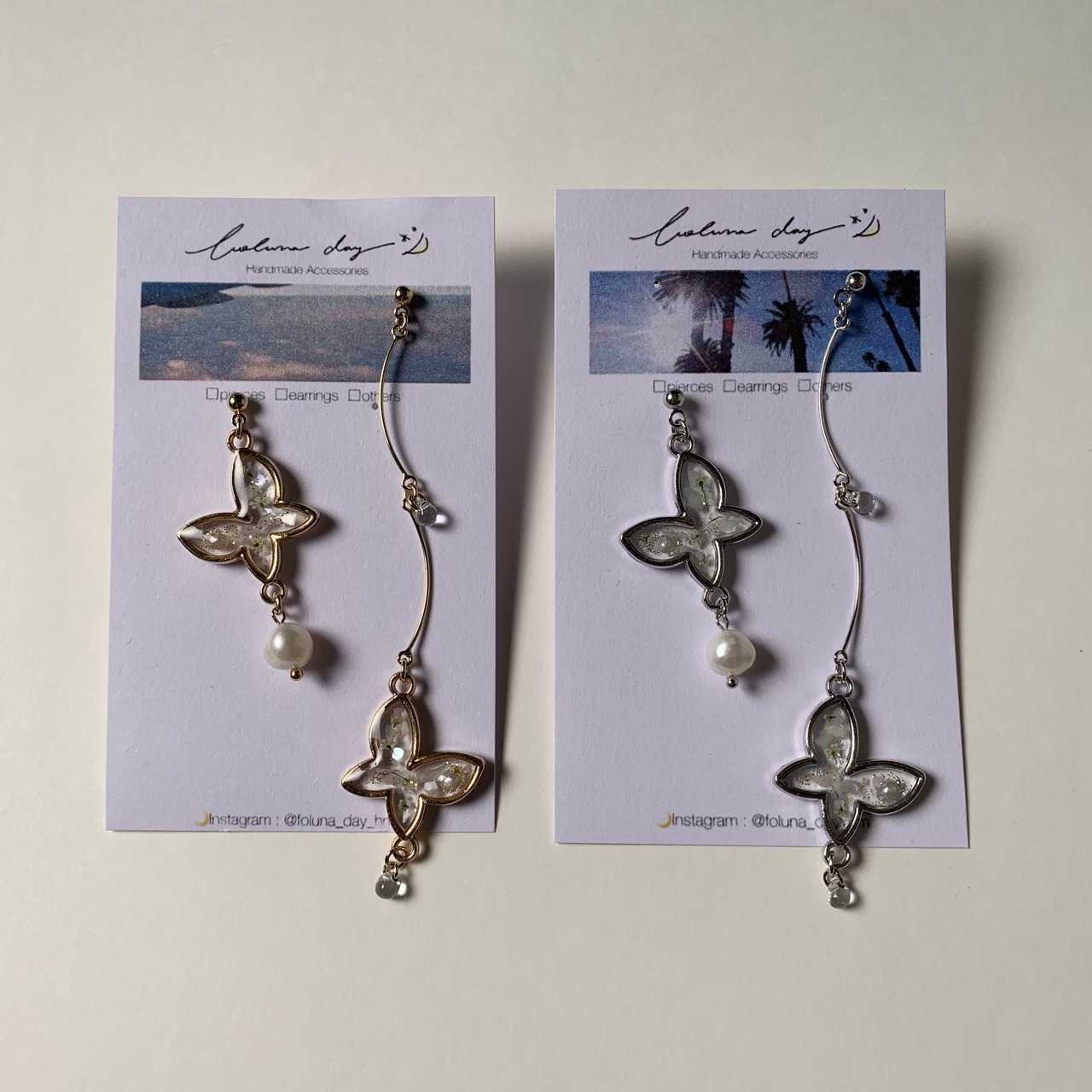 全体的にクリアとホワイトの仕上がりなのでとても爽やかで春夏にぴったりなアクセサリーです。