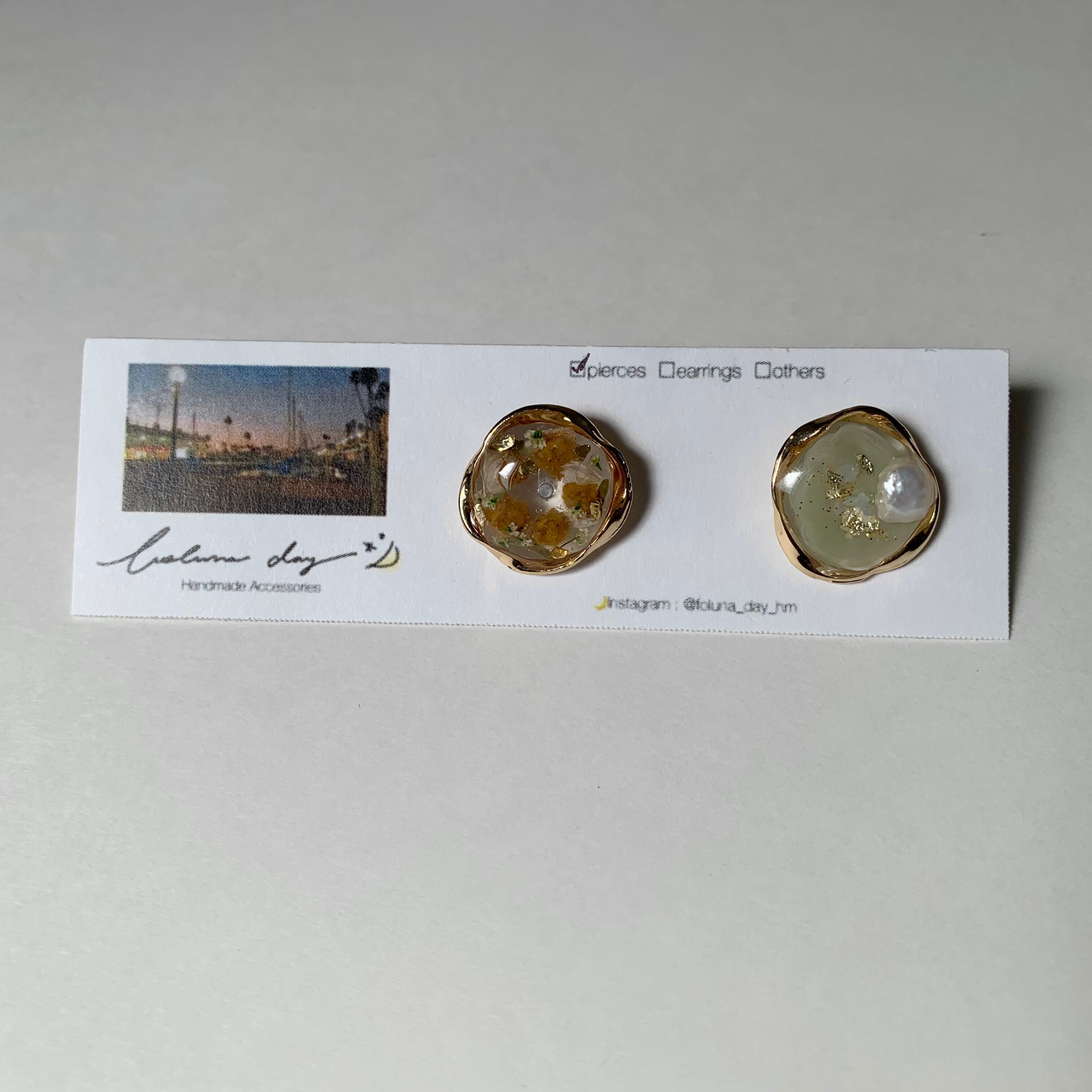 金具はアレルギーの方以外は樹脂のものをおすすめします(ミモザが入ったパーツの金具が透けてしまう為)。