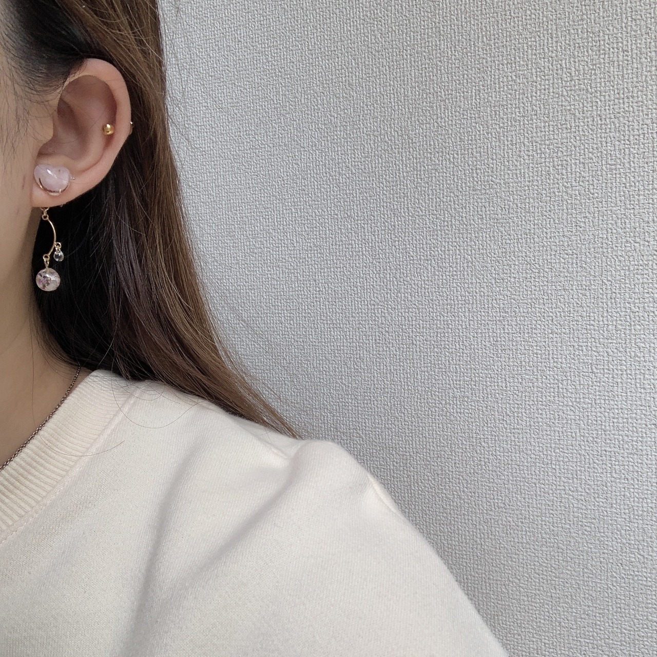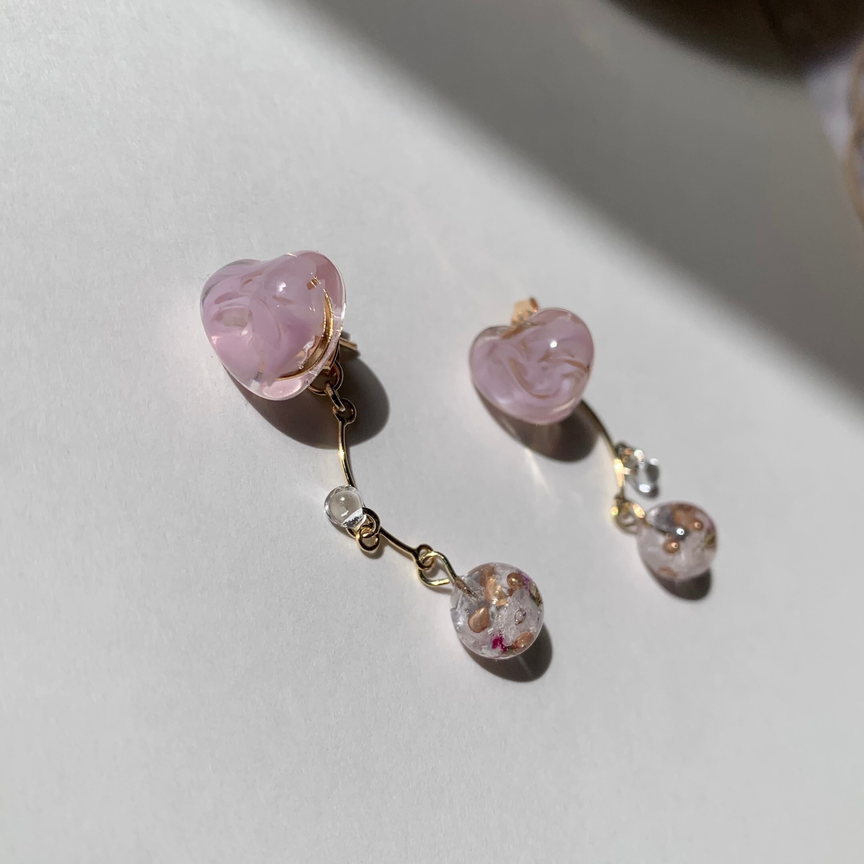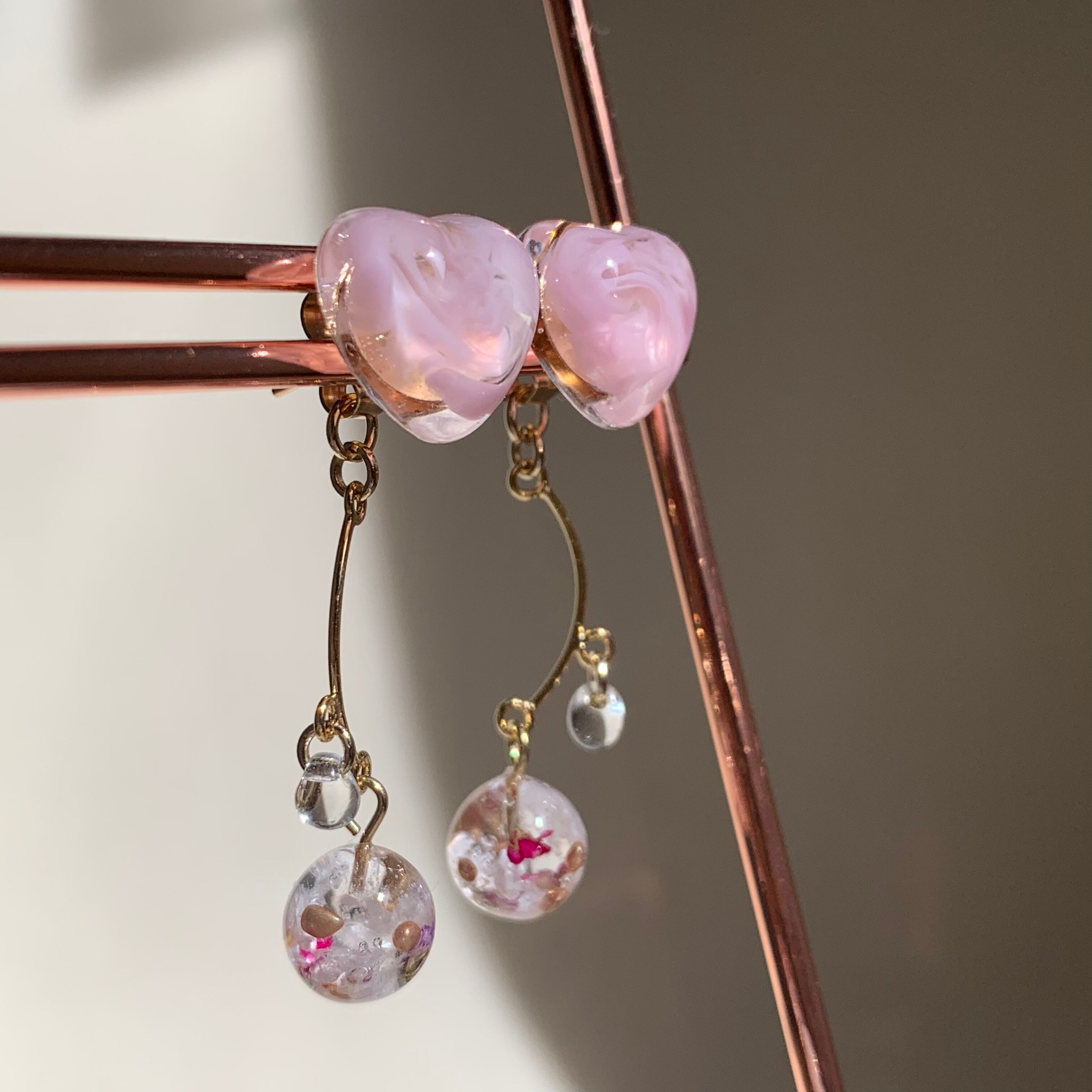 ピアス イヤリング 淡色 くすみ 春 夏 上品 繊細 ピンク おしゃれ ハート 丸 ラウンド チャーム ゴールド フラワー 花 パール 小さめ 小ぶり ミニピアス 揺れる ラブリー 大人っぽい 可愛い 大人可愛い アクセサリー シンプル