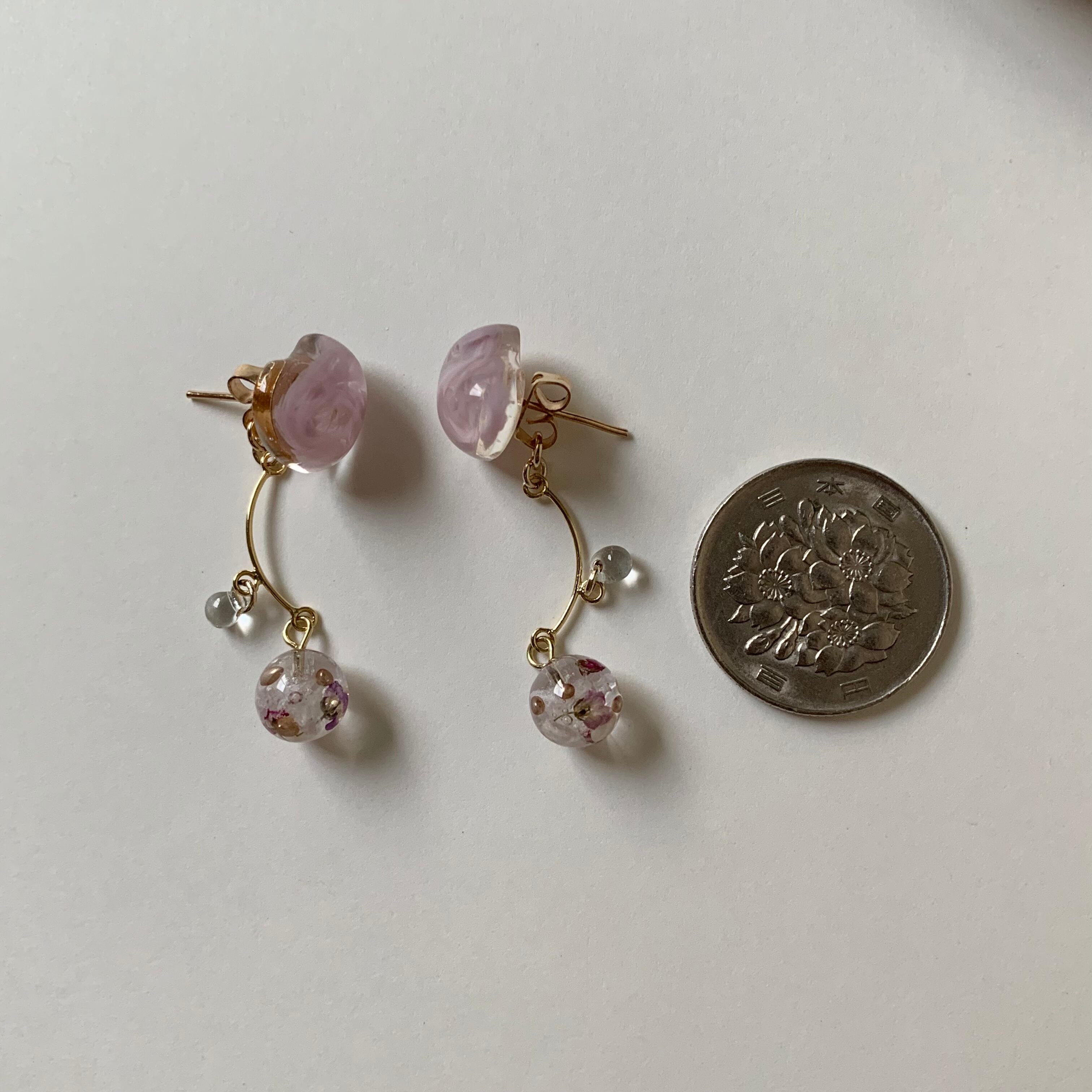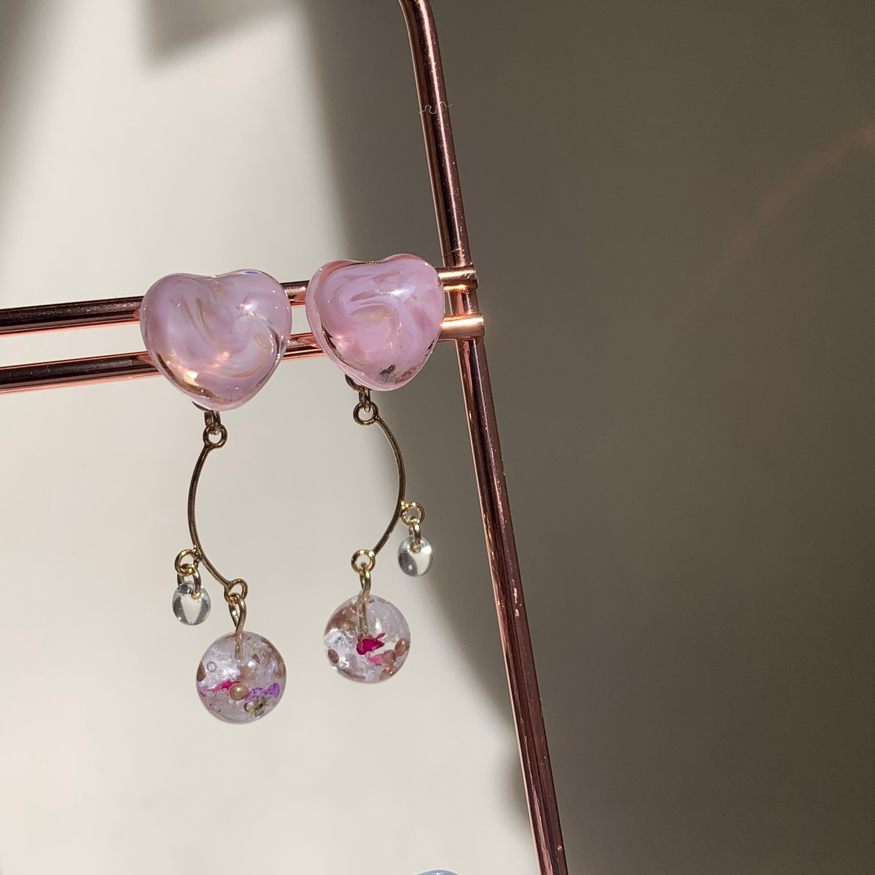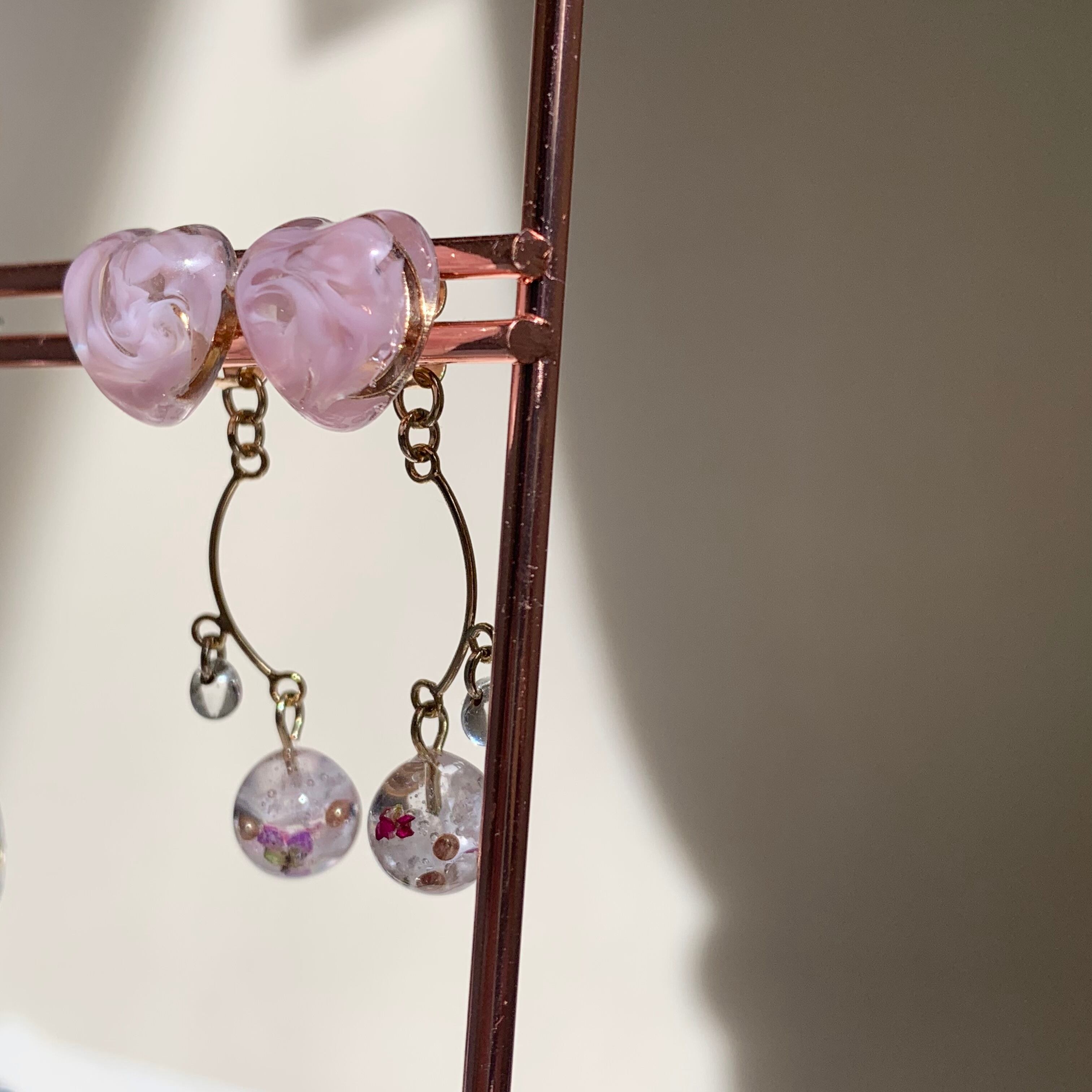 ピアス イヤリング 淡色 くすみ 春 夏 上品 繊細 ピンク おしゃれ ハート 丸 ラウンド チャーム ゴールド フラワー 花 パール 小さめ 小ぶり ミニピアス 揺れる ラブリー 大人っぽい 可愛い 大人可愛い アクセサリー シンプル