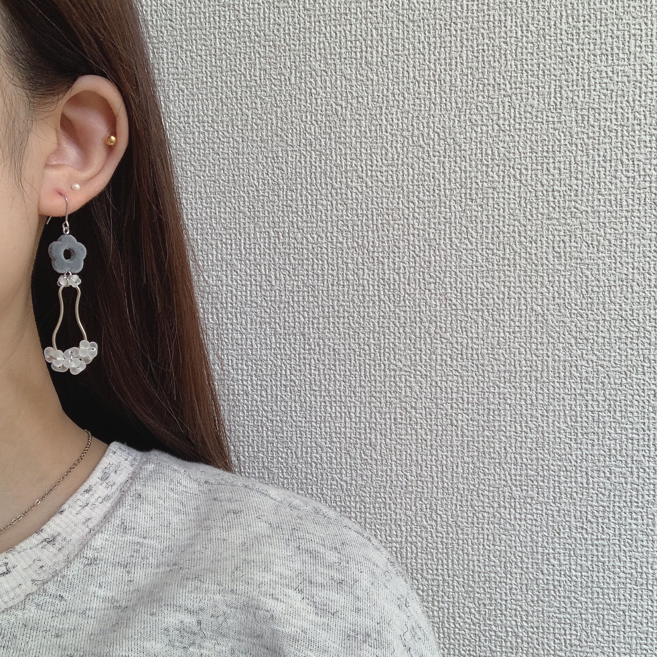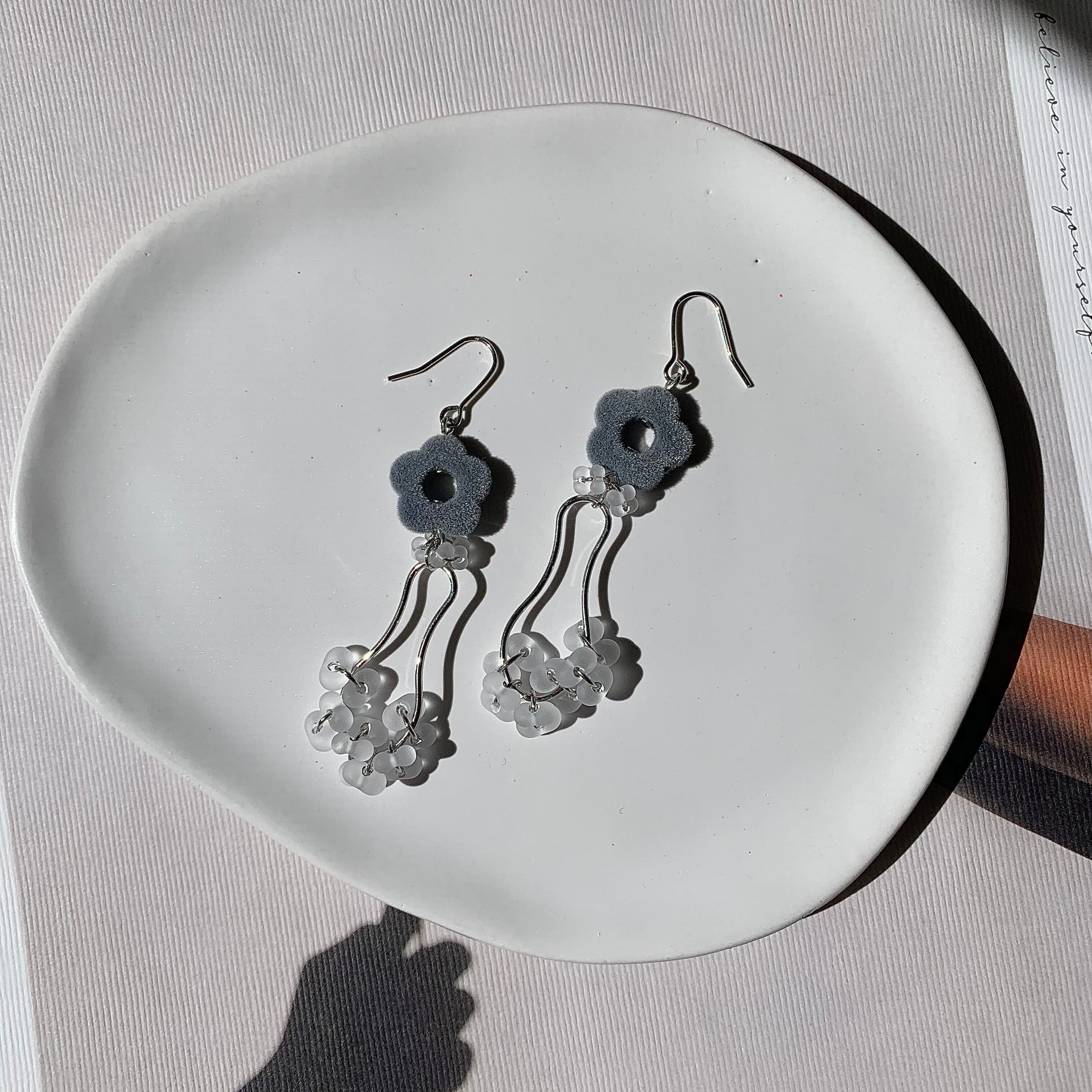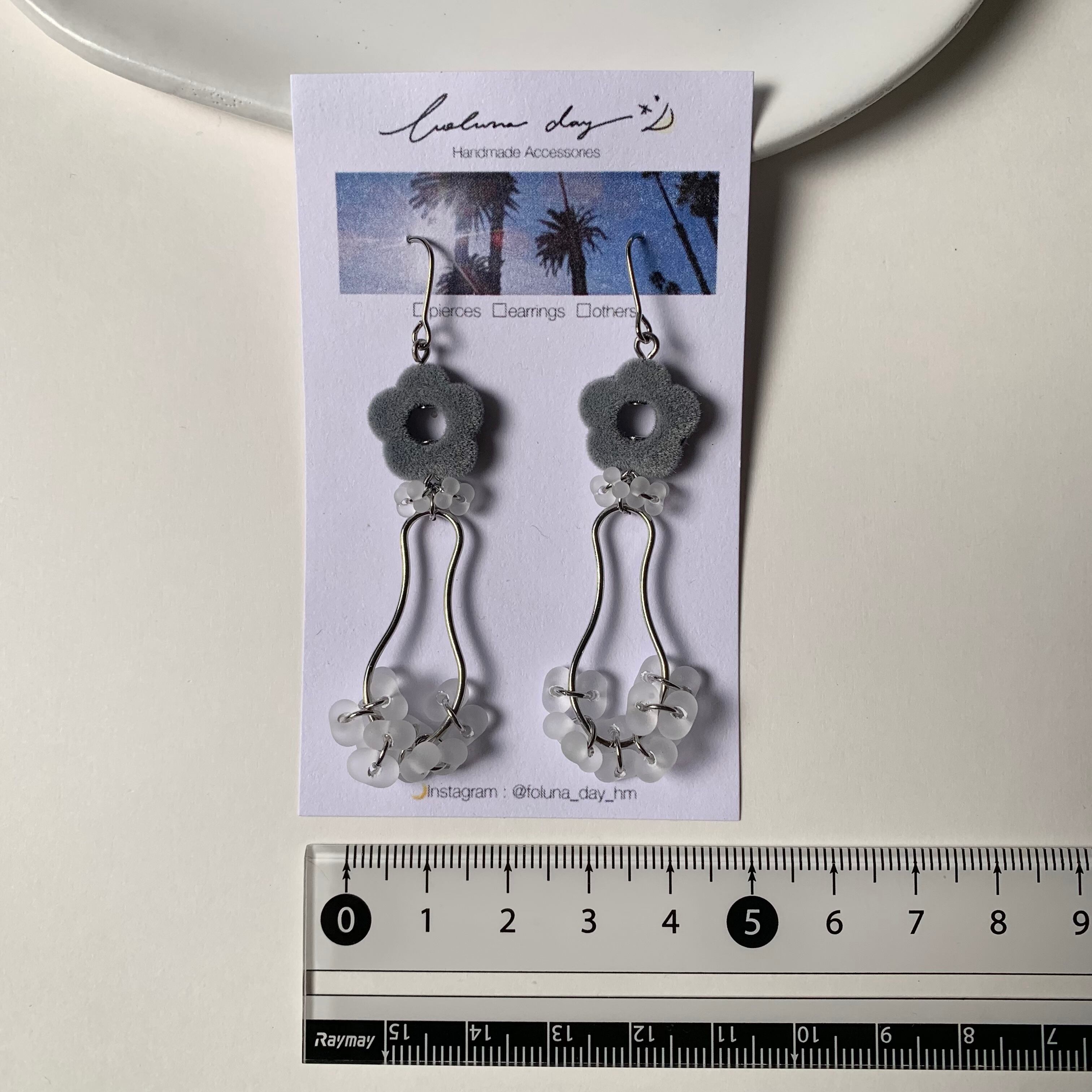 ピアス イヤリング 淡色 マット 冬 上品 繊細 おしゃれ 大ぶり 大きめ 大人っぽい 可愛い 大人可愛い アクセサリー ロングピアス 揺れる グレー ホワイト お花 フラワー