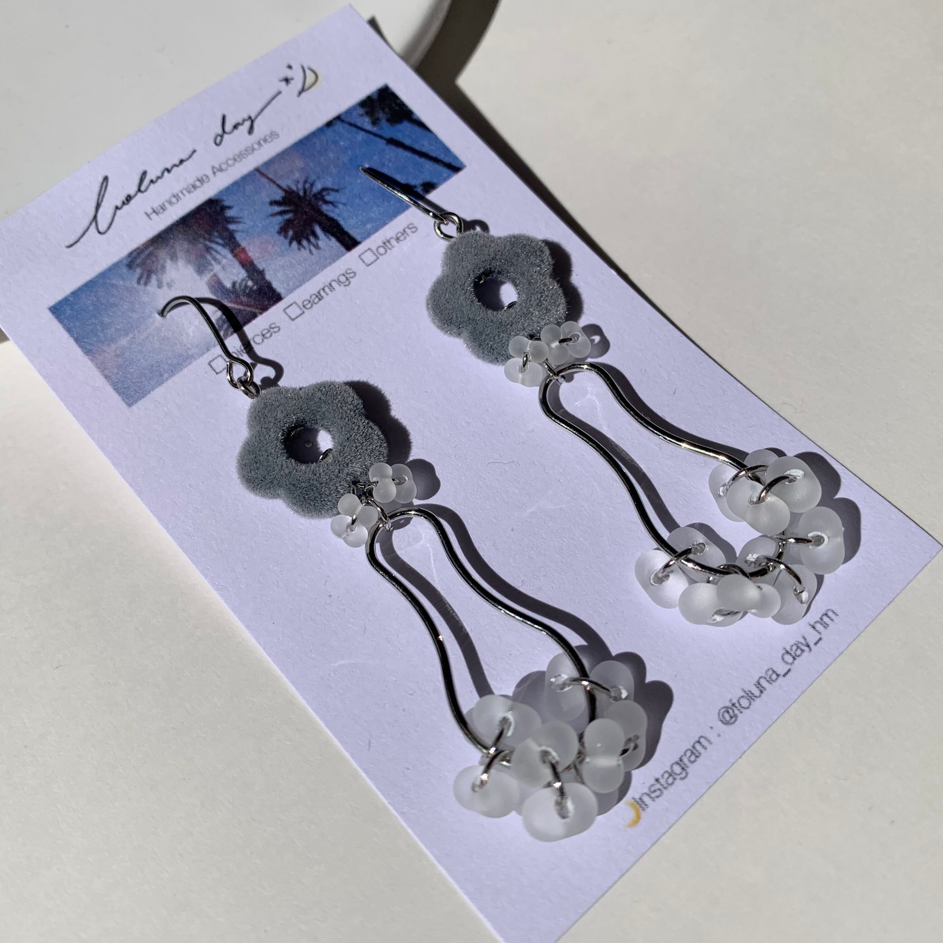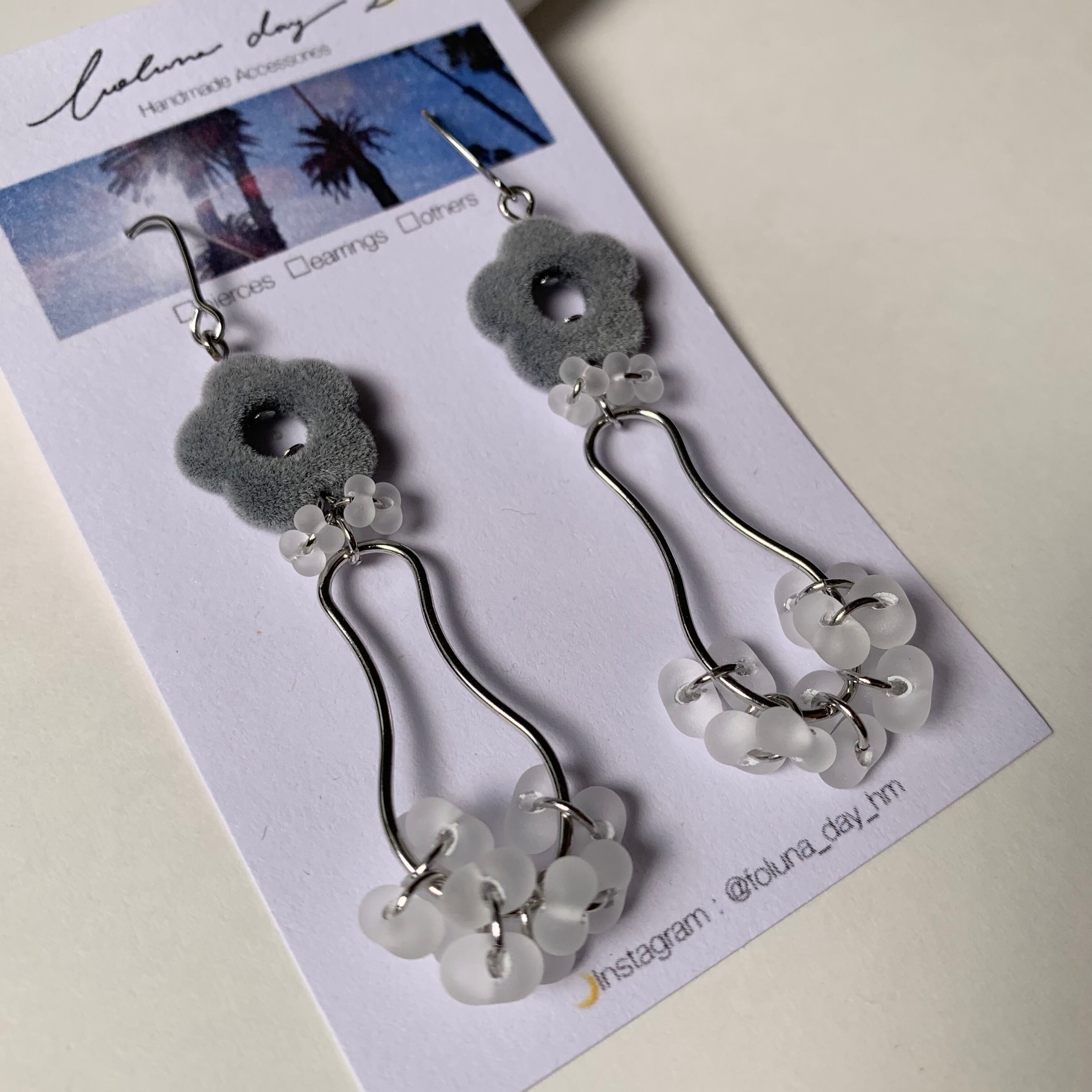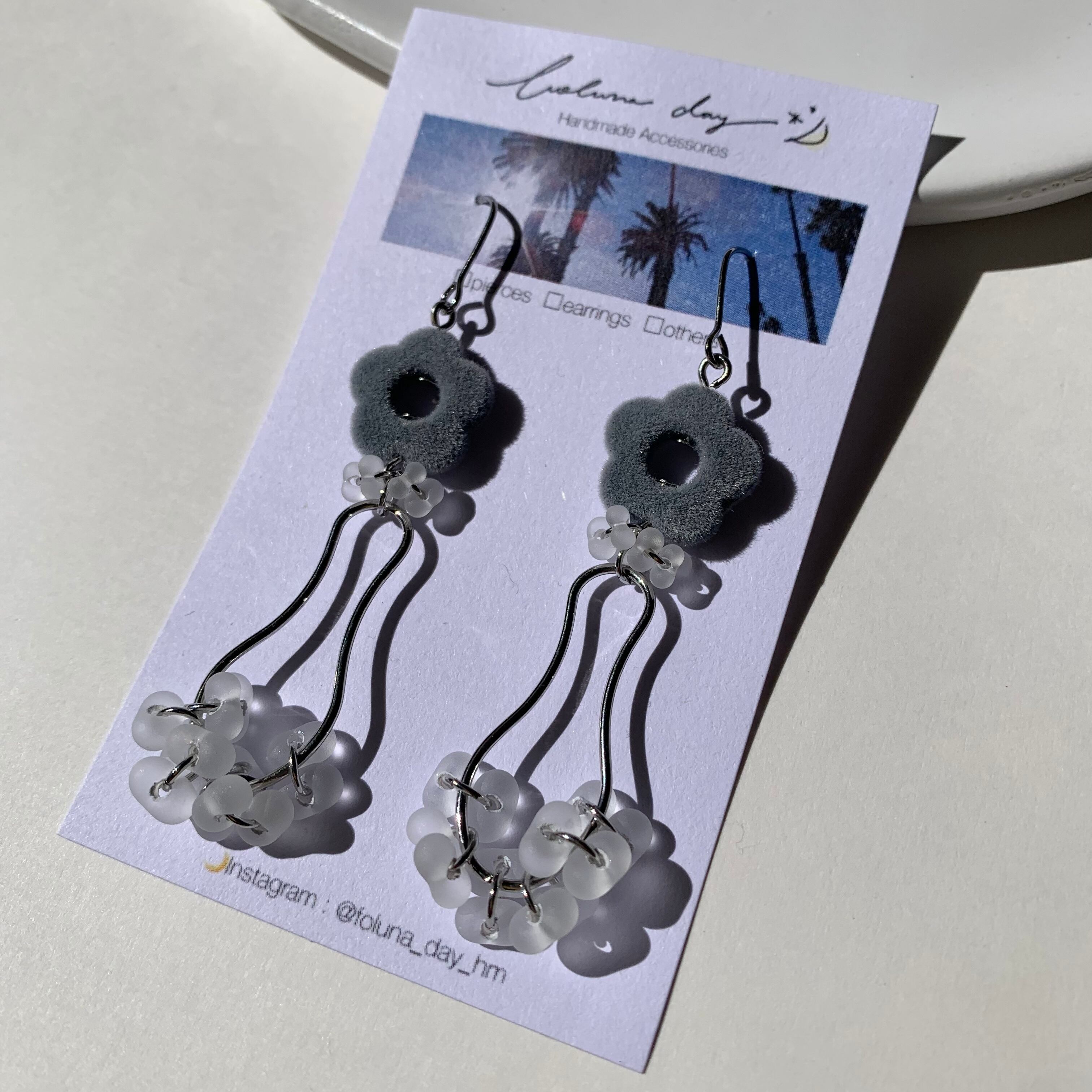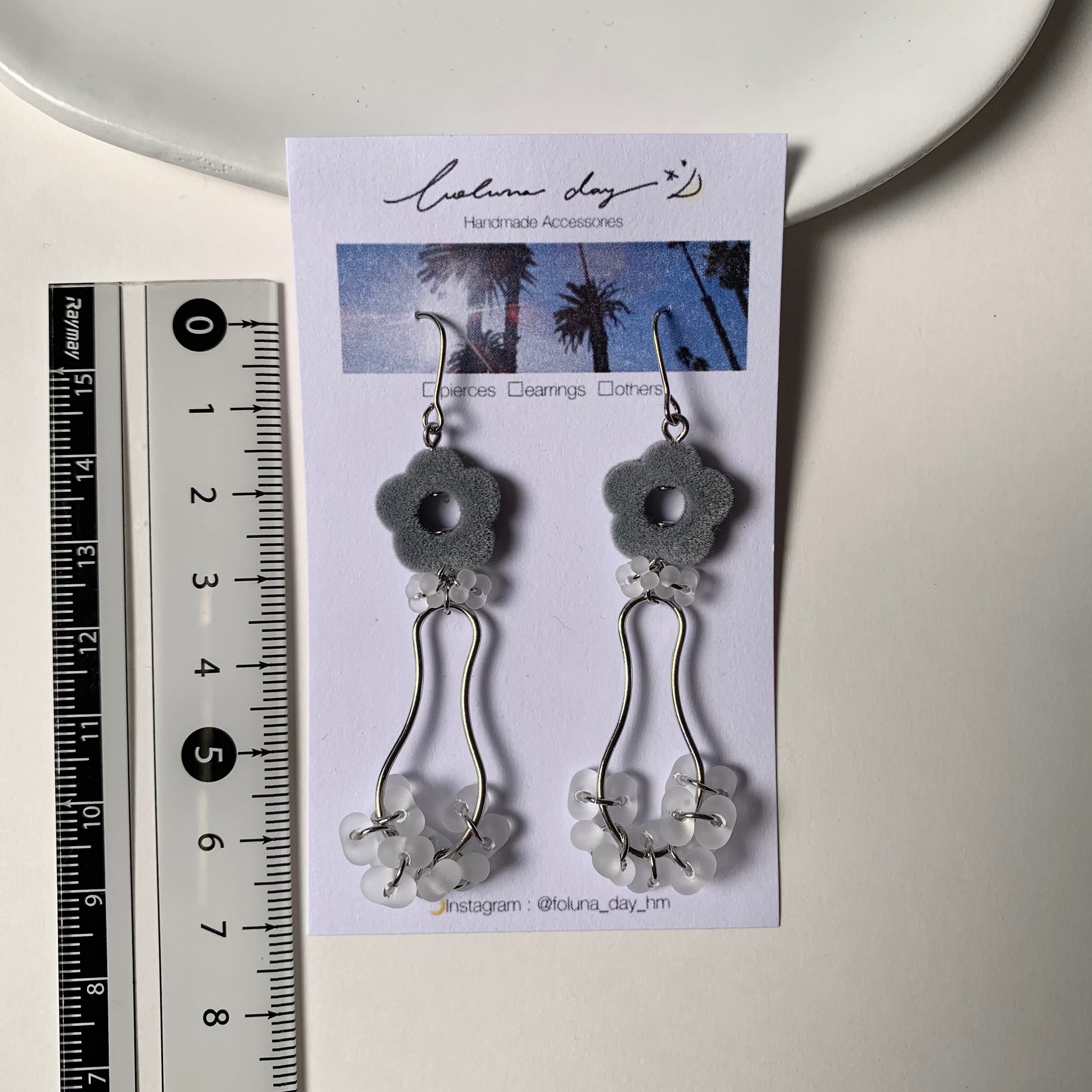 ピアス イヤリング 淡色 マット 冬 上品 繊細 おしゃれ 大ぶり 大きめ 大人っぽい 可愛い 大人可愛い アクセサリー ロングピアス 揺れる グレー ホワイト お花 フラワー
