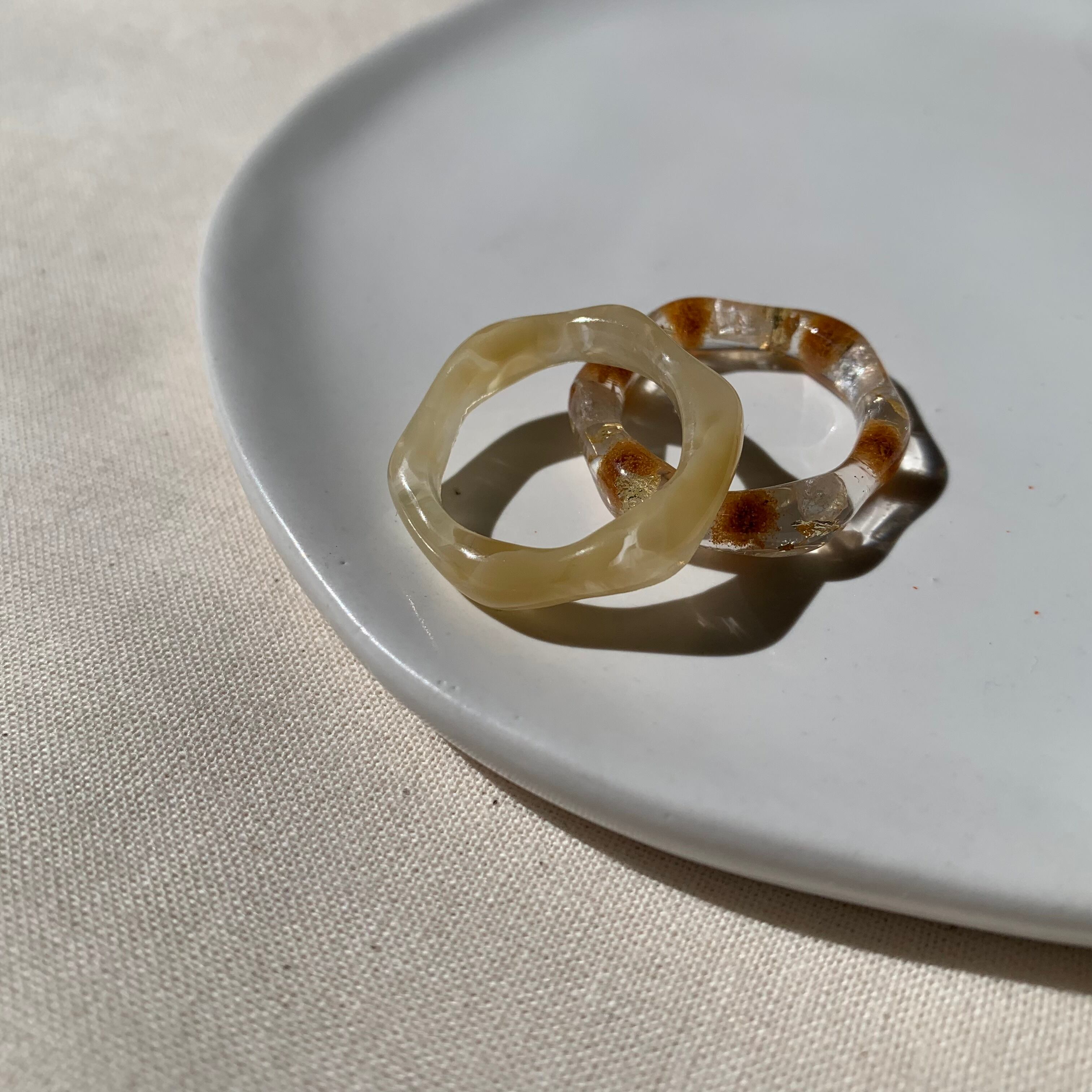 レジン リング 春色 春 淡色 韓国 韓国ファッション 華奢 上品 繊細 おしゃれ 優しい 小ぶり 指輪 お花 ミモザ フラワー 黄色 イエロー ゴールド 大人可愛い フェミニン ラブリー アクセサリー 透明感