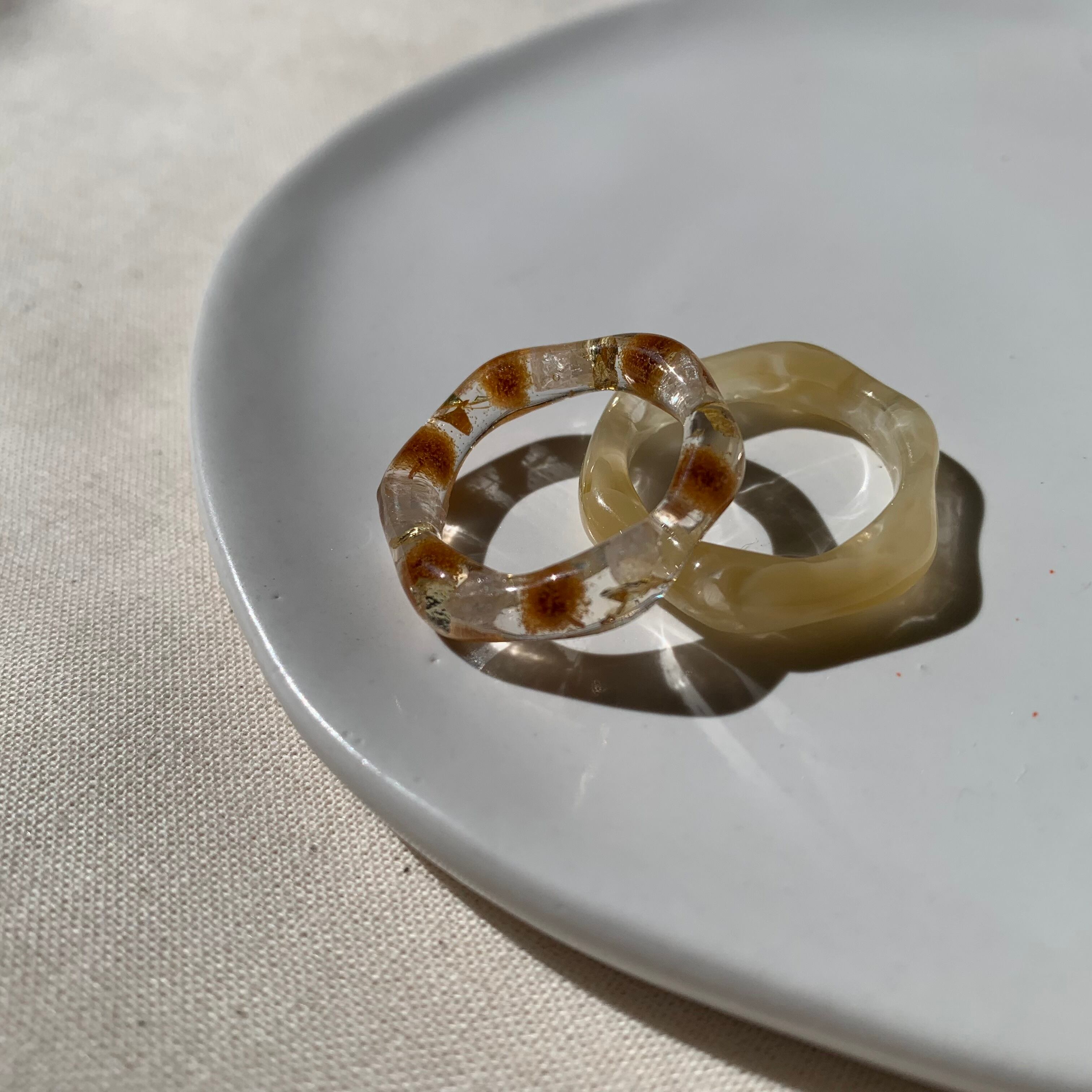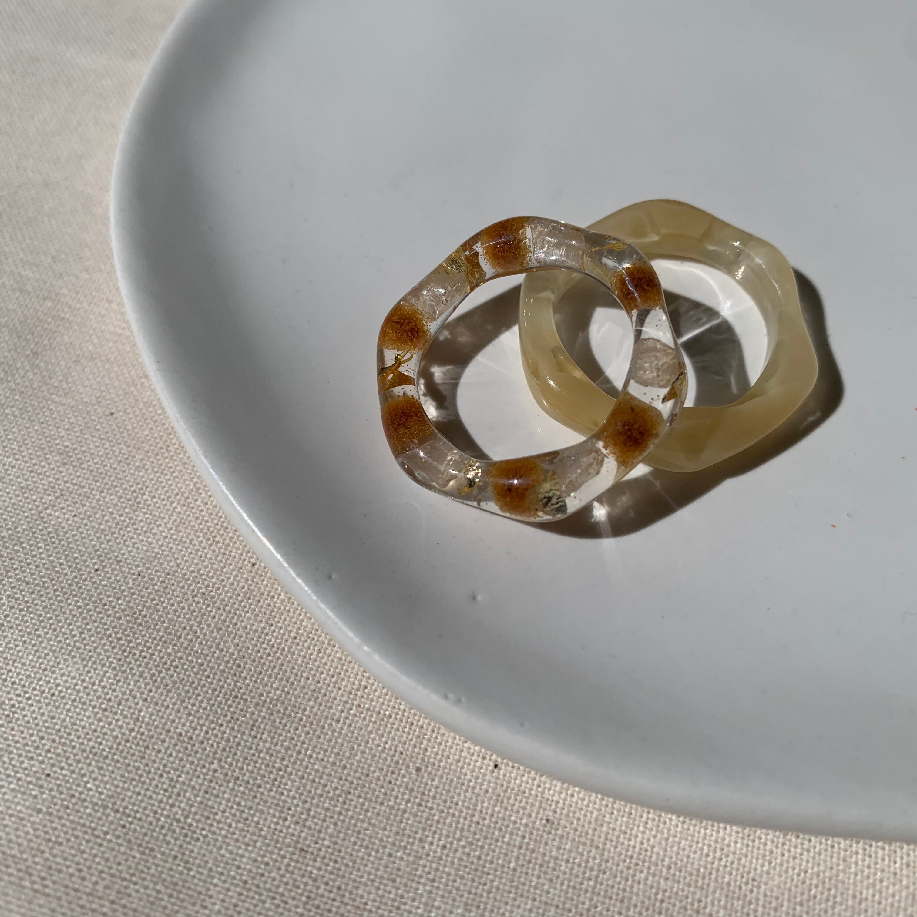 ミモザが入ったリングにはガラスサンドも入っており、光に当たるとキラキラしてとても綺麗です*̣̩⋆