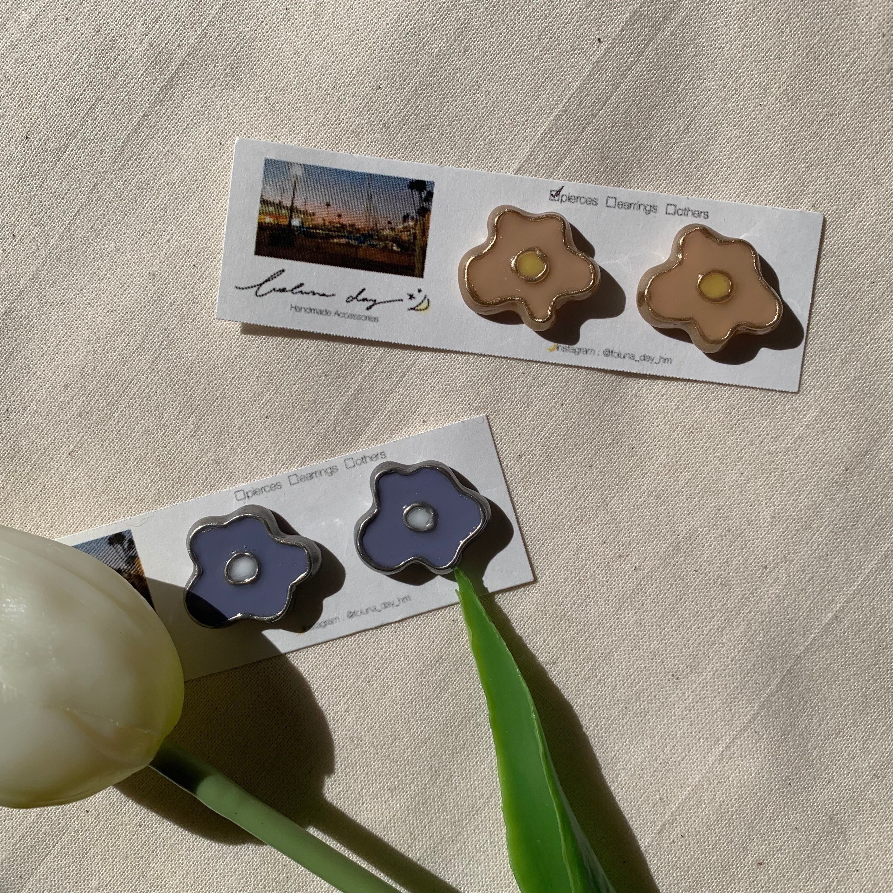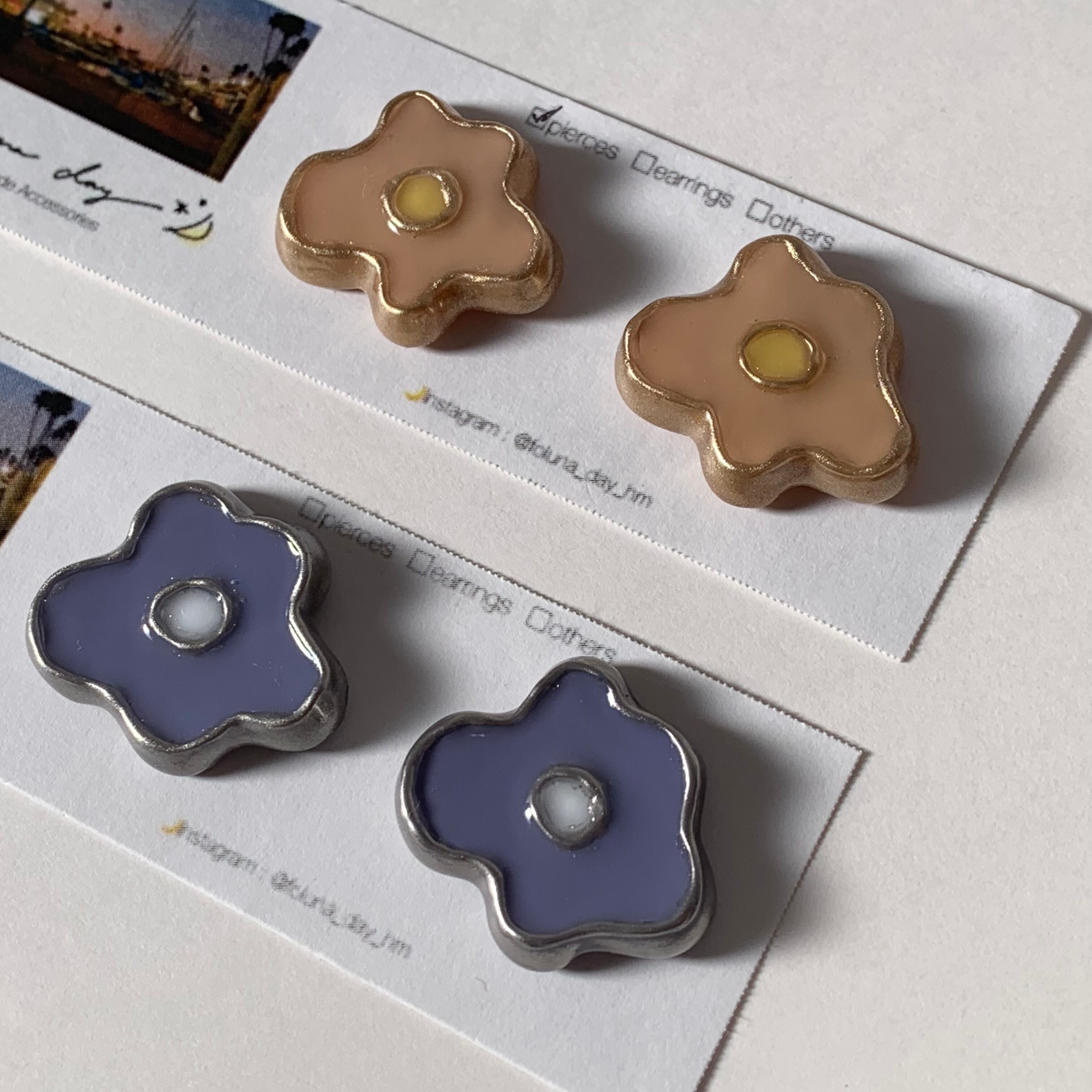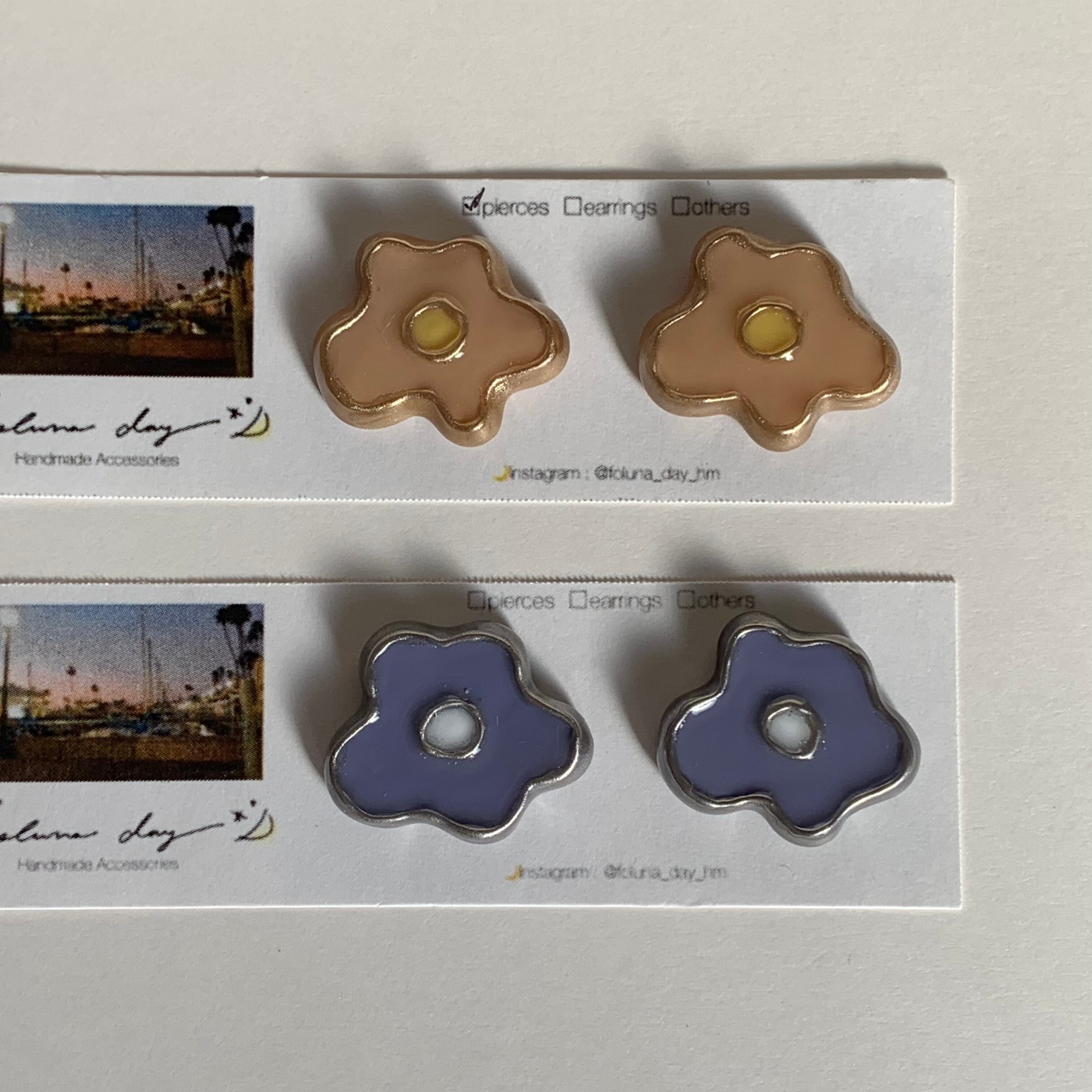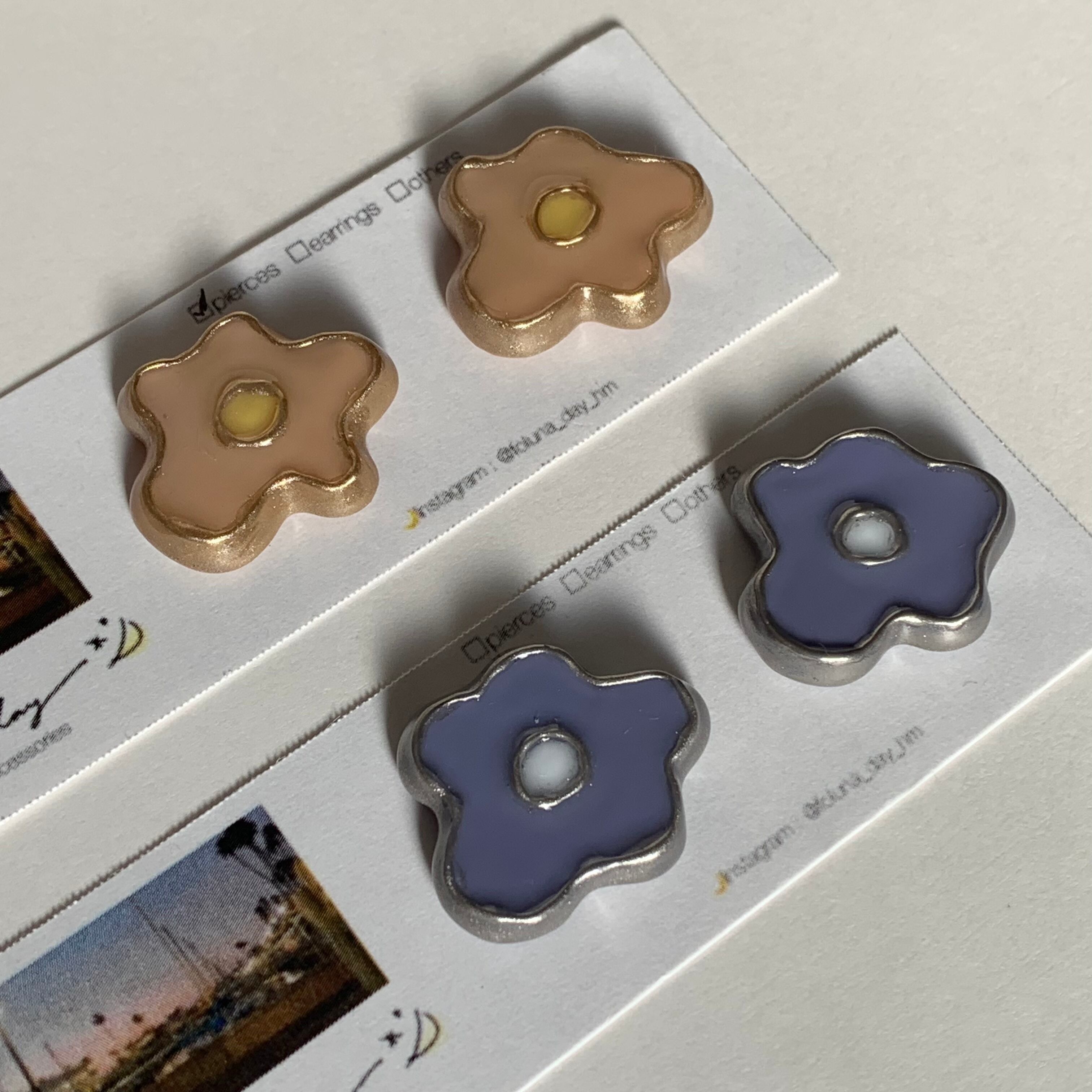 ピアス イヤリング 春色 春 淡色 韓国 韓国ファッション ナチュラル 繊細 おしゃれ 優しい お花 フラワー 黄色 イエロー 紫 パープル 大人可愛い ラブリー アクセサリー マット 個性的