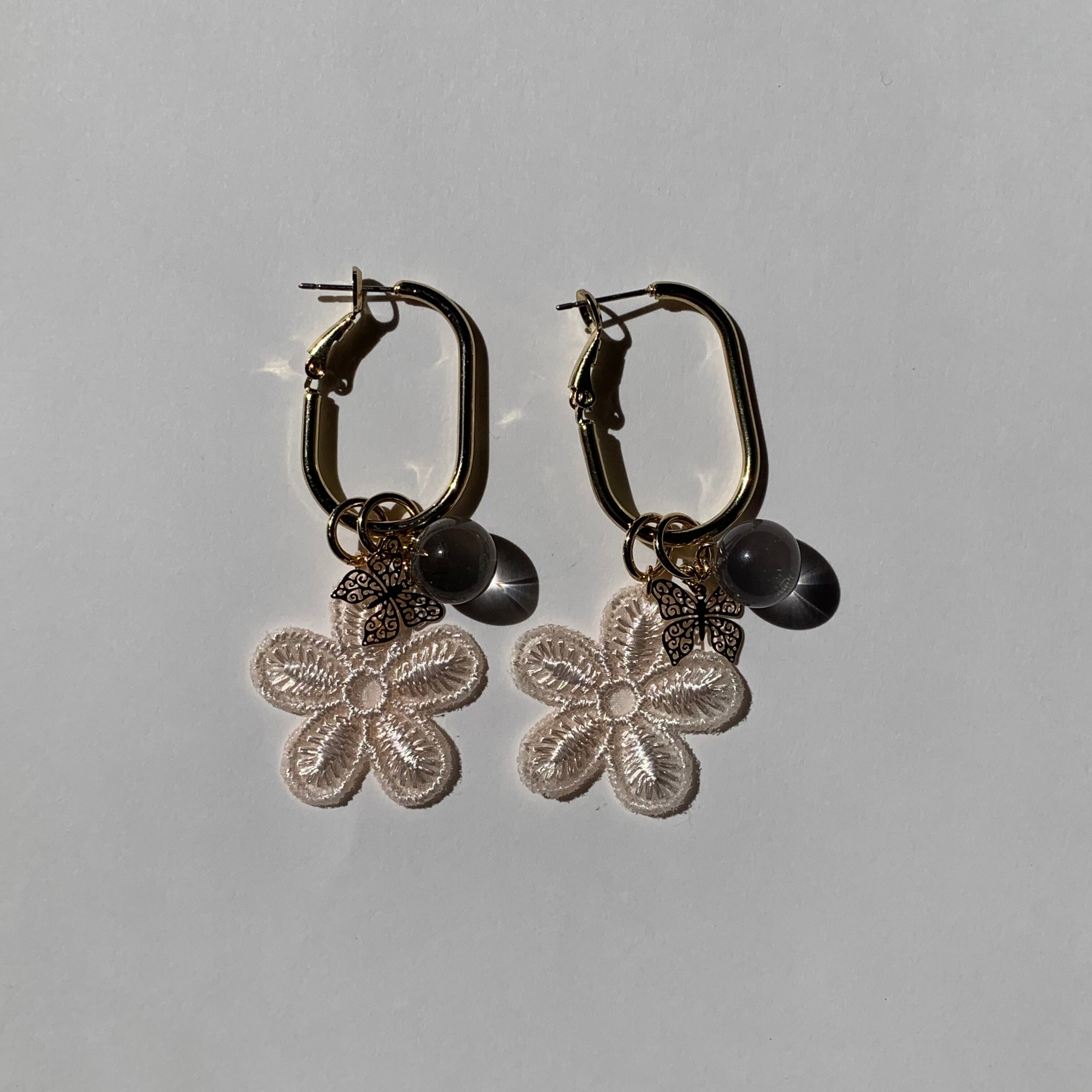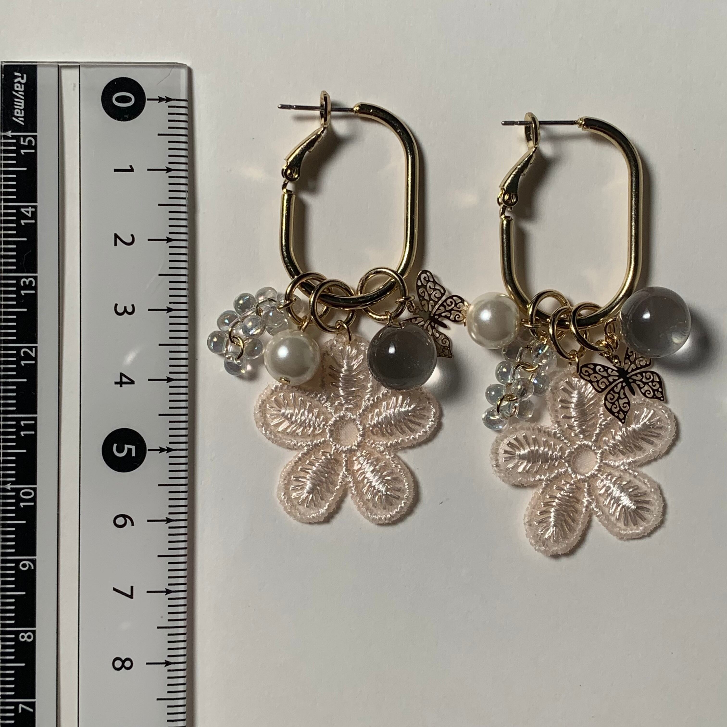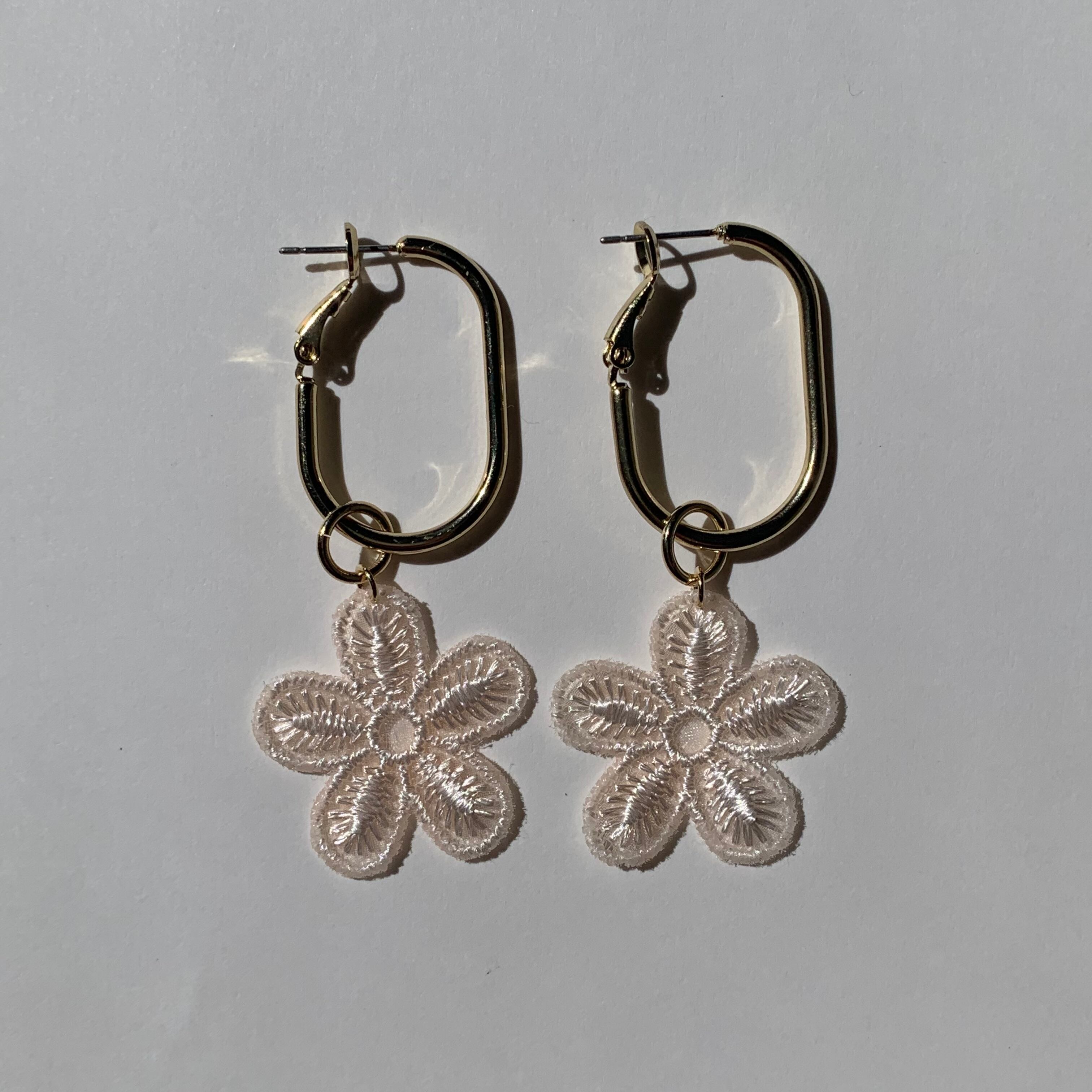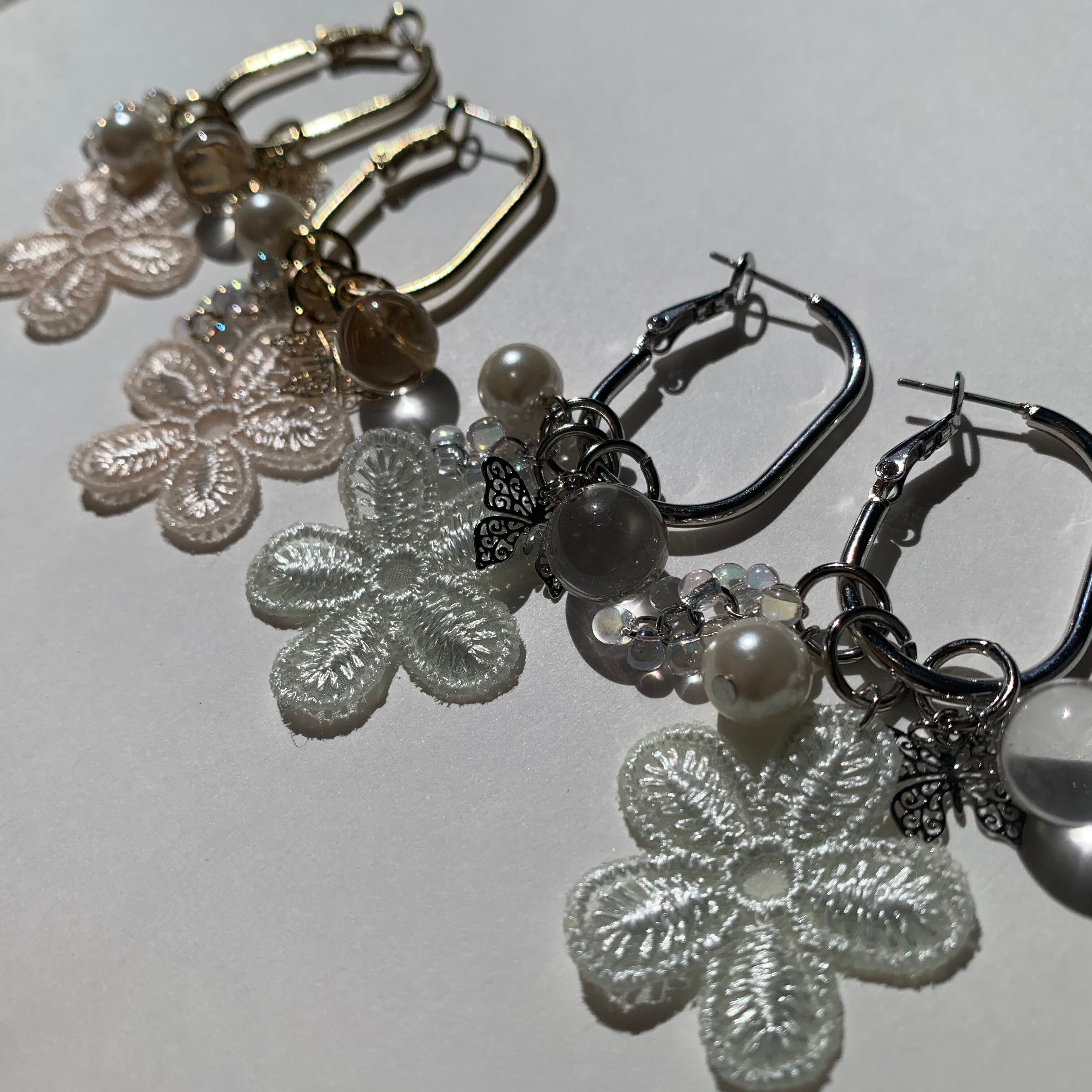 大きめのオーバルフープピアスに大きなレースフラワーを合わせました。:*