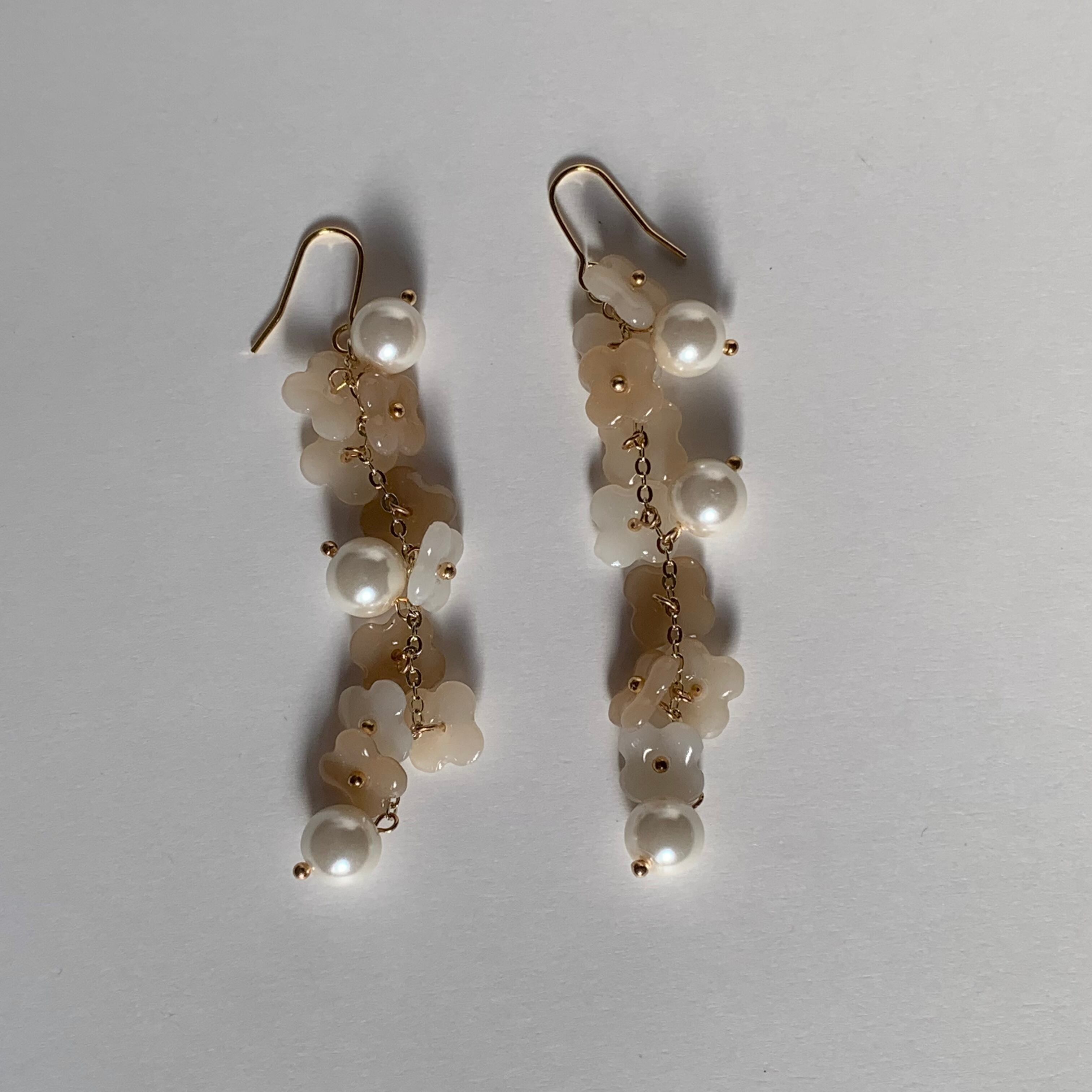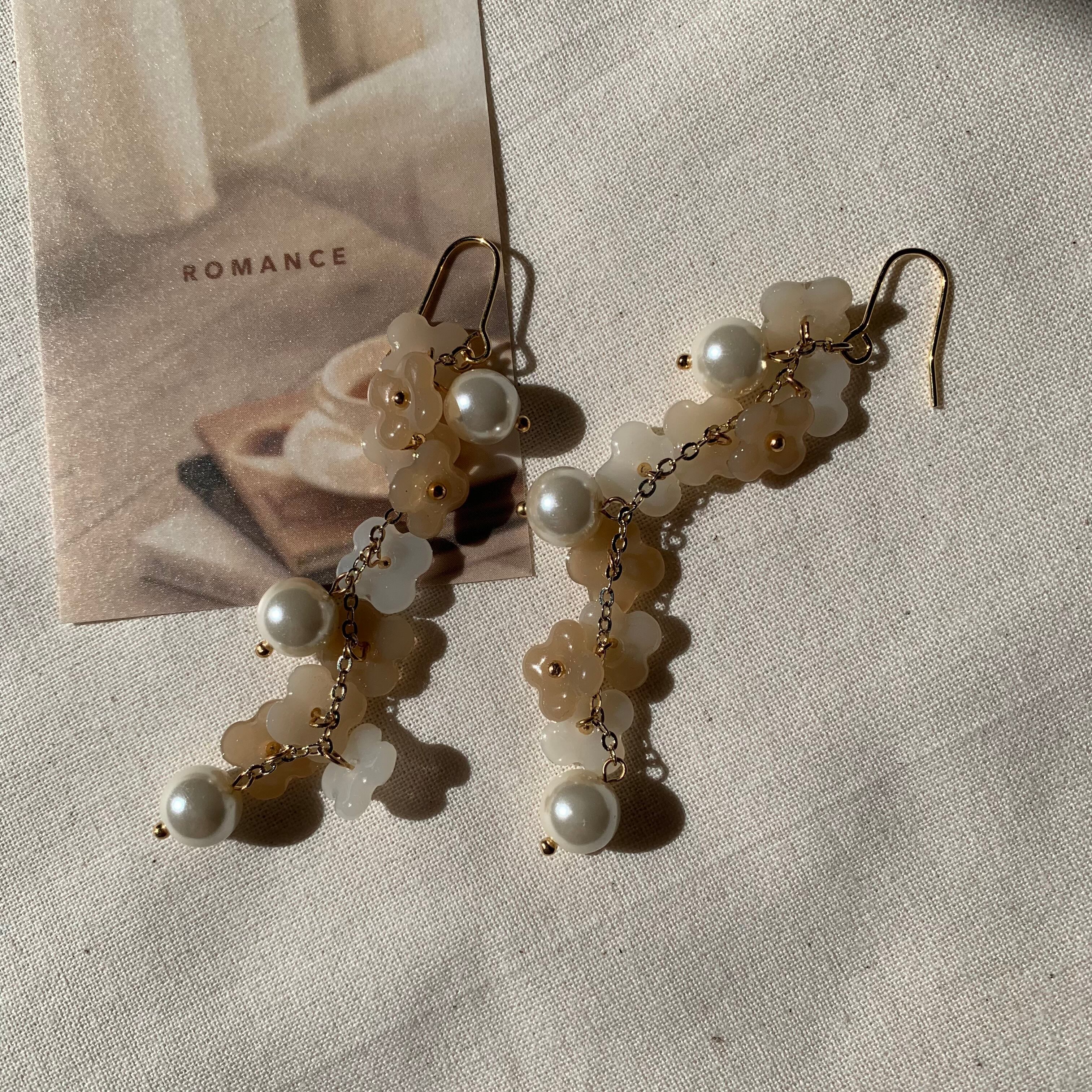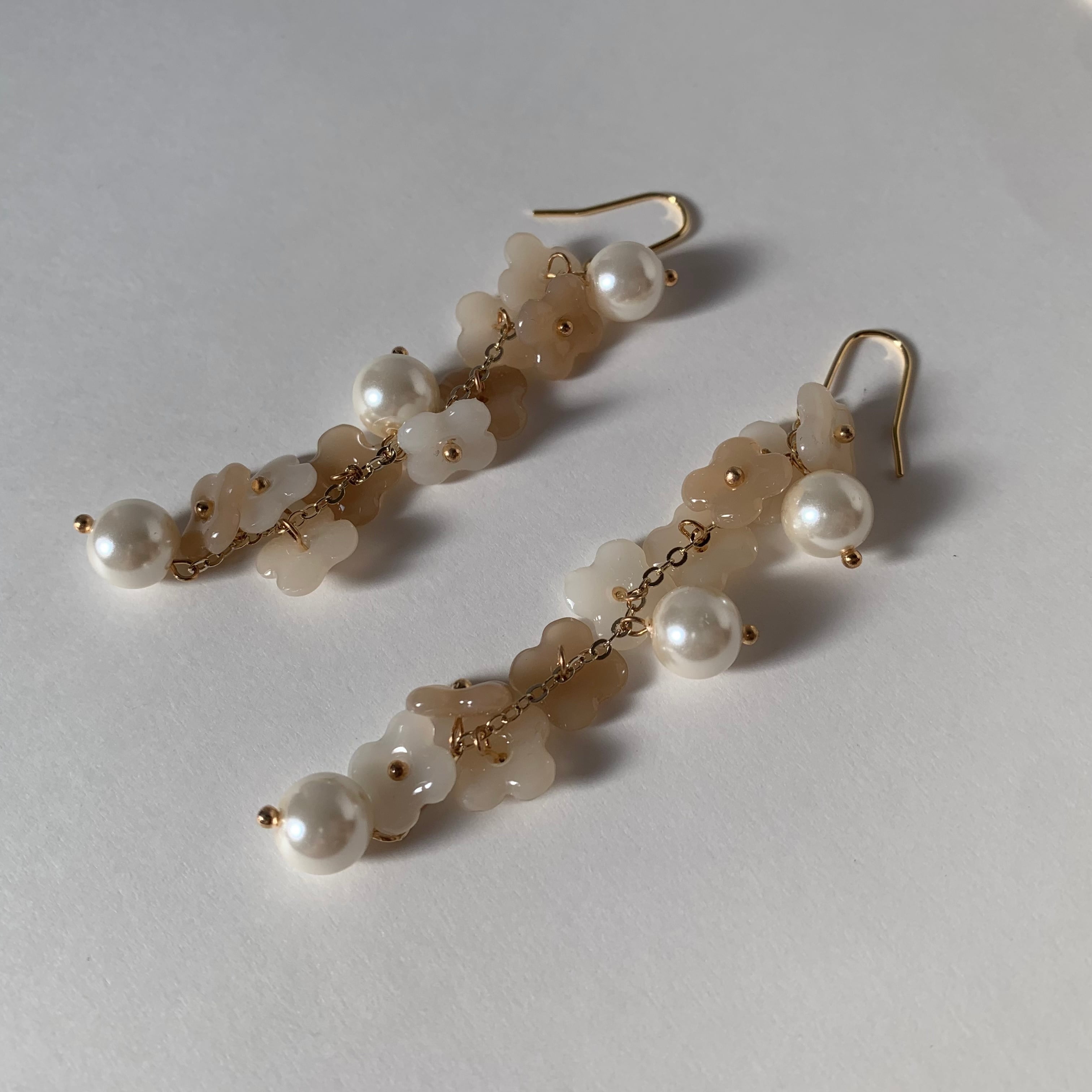 ピアス イヤリング 春色 春 淡色 韓国 韓国ファッション ナチュラル ベージュ クリーム ホワイト 繊細 上品 おしゃれ 優しい 華やか お花 フラワー パール 大人可愛い ラブリー フェミニン アクセサリー 大ぶり 個性的