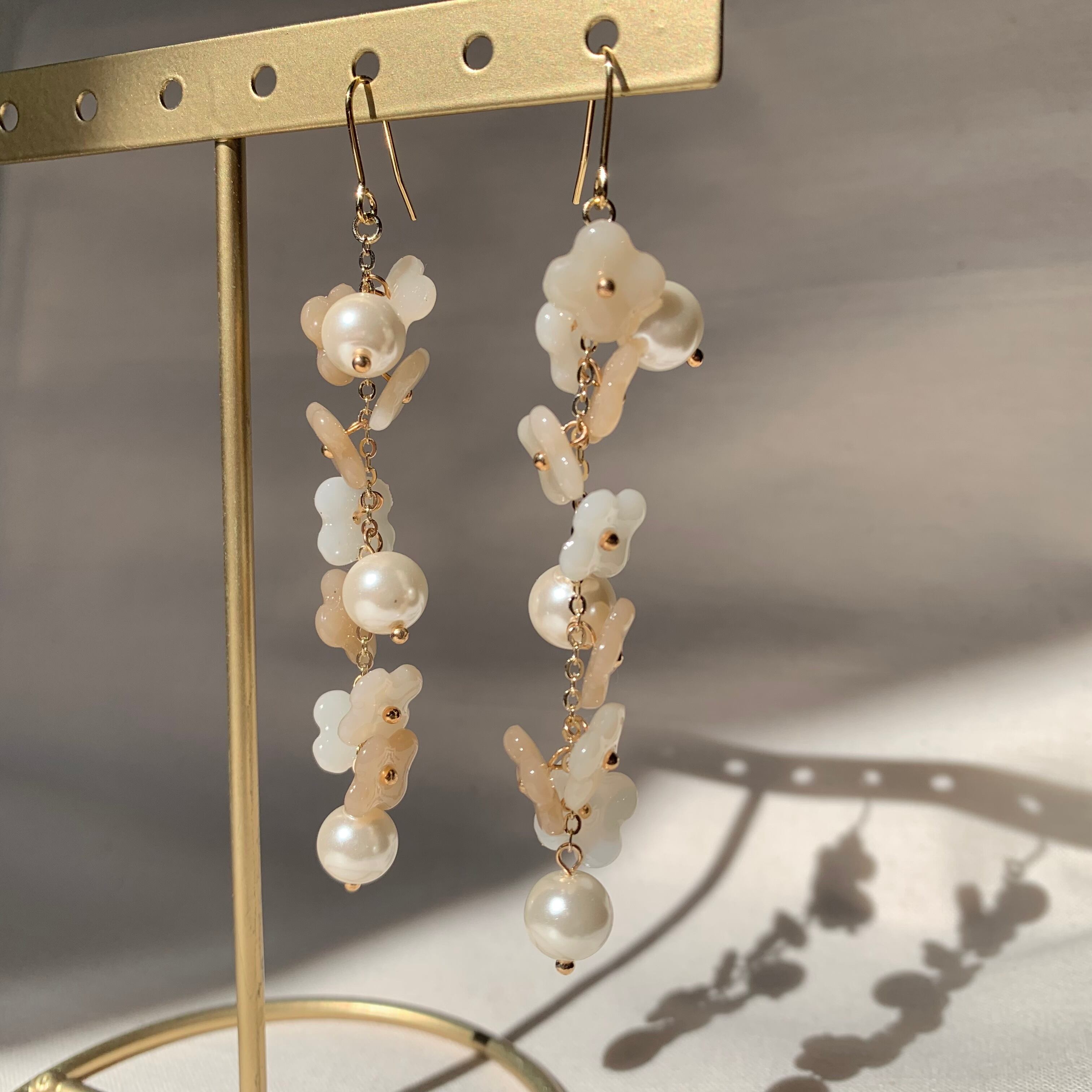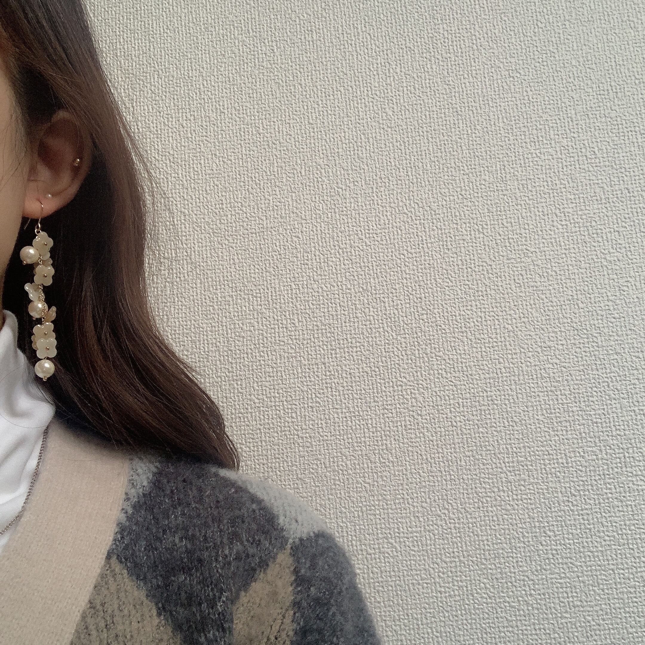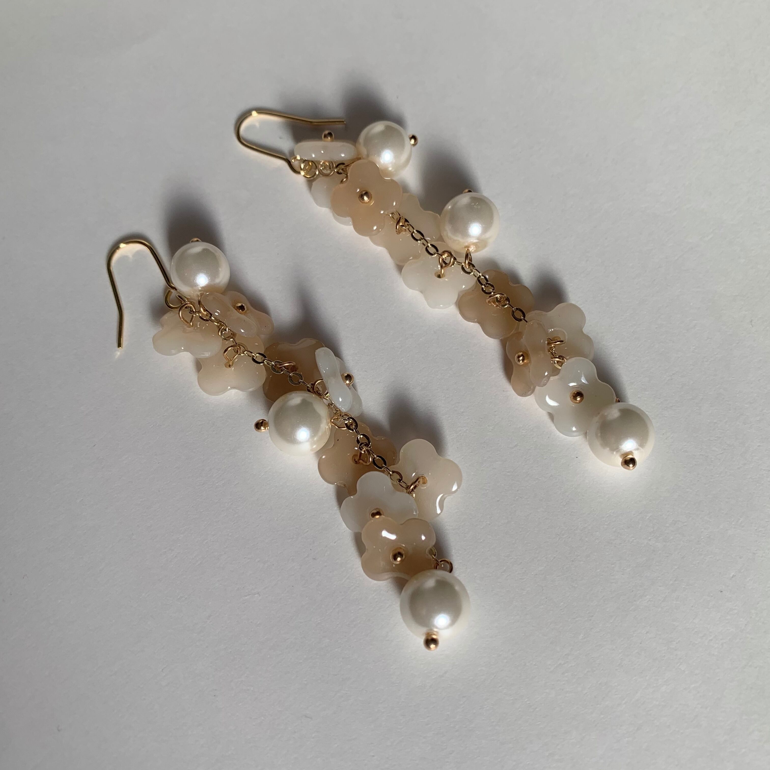 ピアス イヤリング 春色 春 淡色 韓国 韓国ファッション ナチュラル ベージュ クリーム ホワイト 繊細 上品 おしゃれ 優しい 華やか お花 フラワー パール 大人可愛い ラブリー フェミニン アクセサリー 大ぶり 個性的