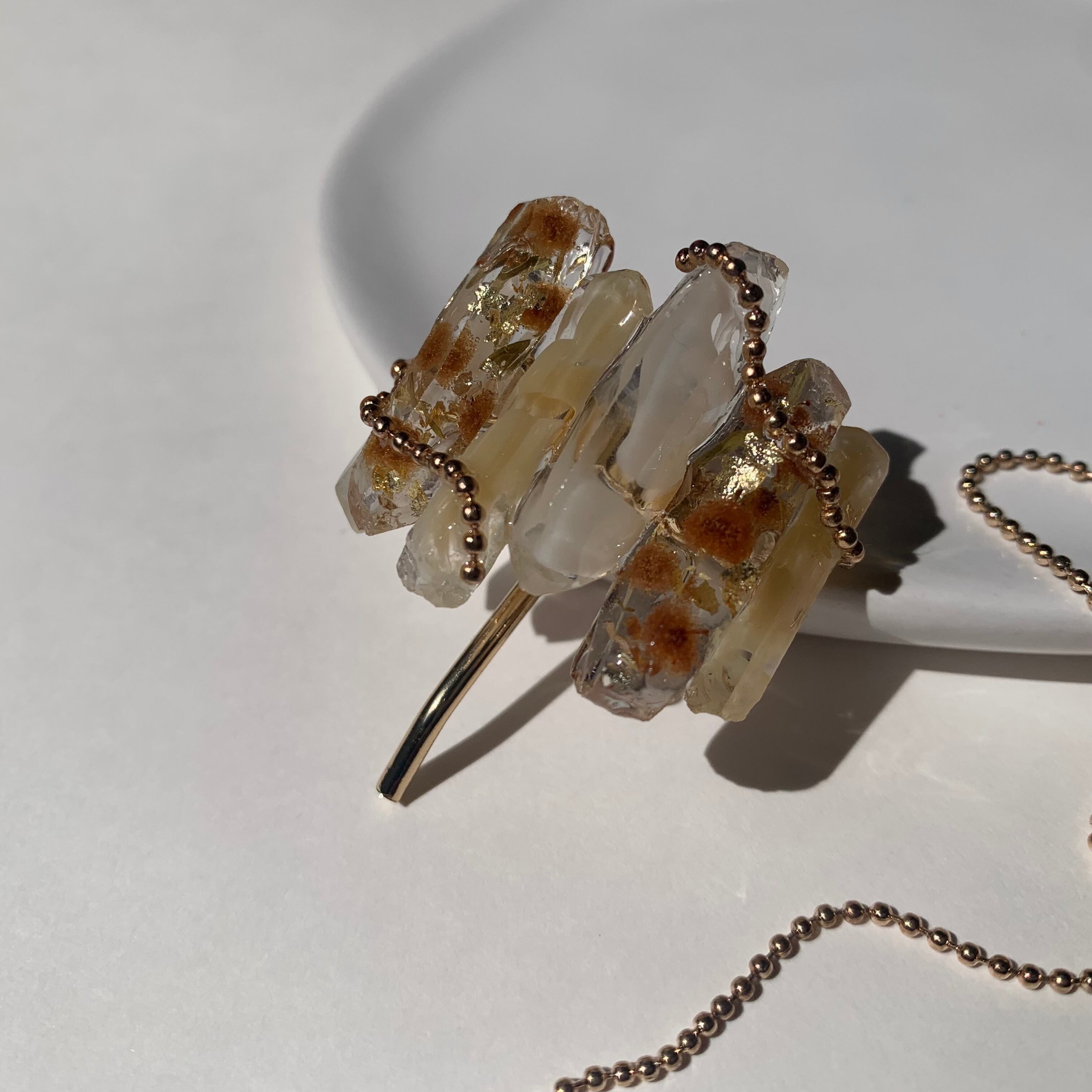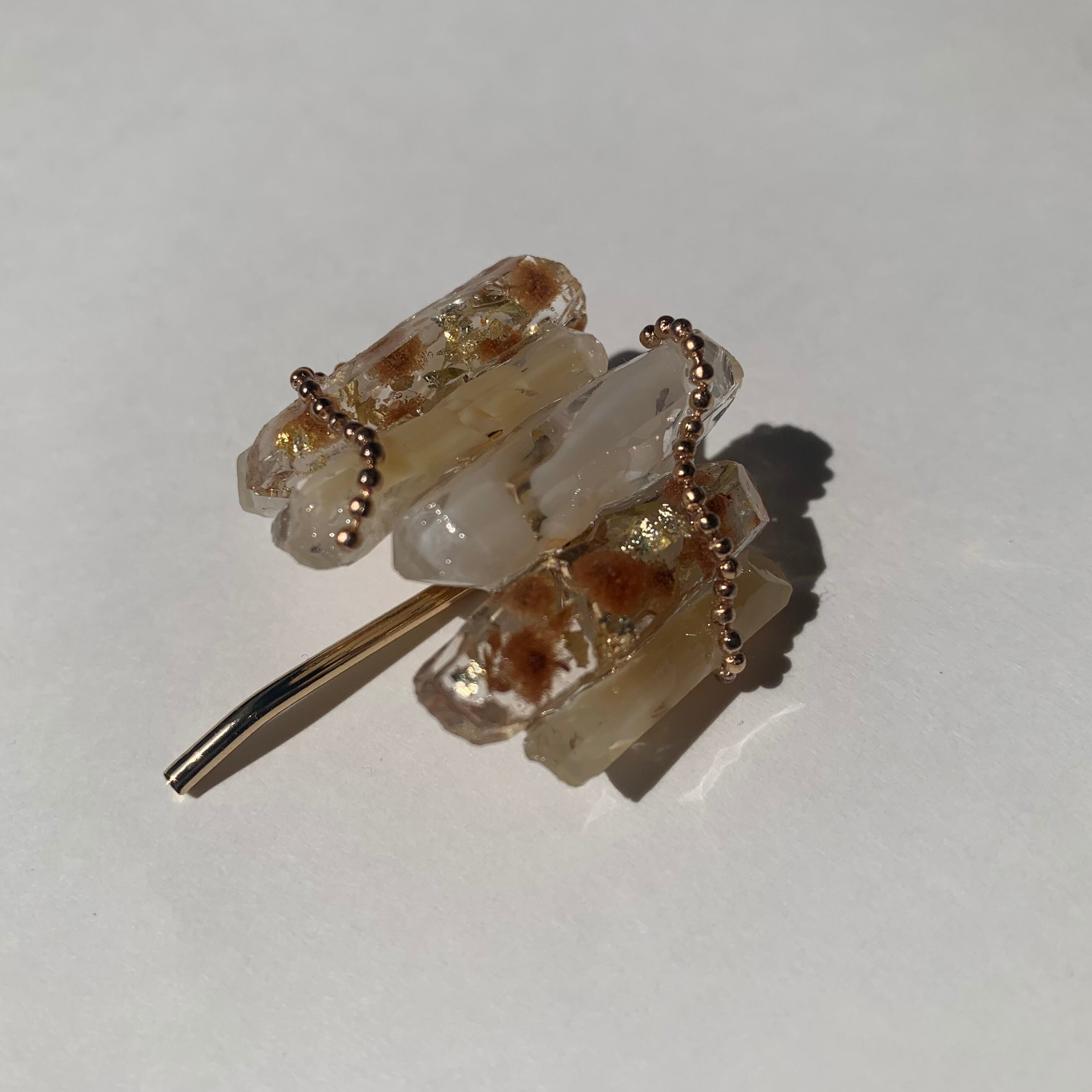 ポニーフック ミモザ 淡色 優しい 韓国 黄色 イエロー 白 ホワイト マーブル 繊細 上品 おしゃれ 華やか 鉱石風 大人可愛い ラブリー フェミニン ニュアンス アクセサリー おしゃれ チェーン 個性的 お呼ばれ